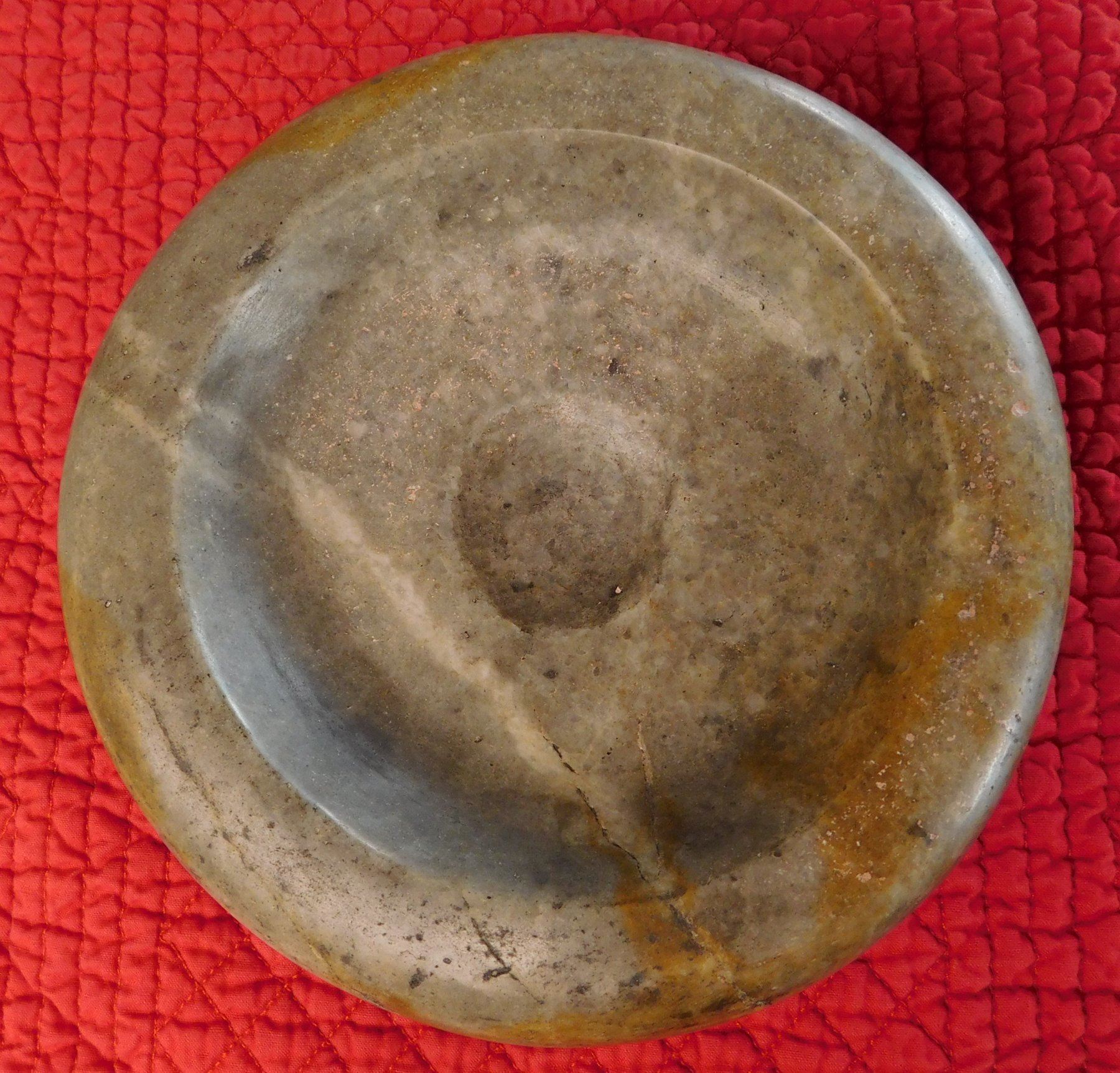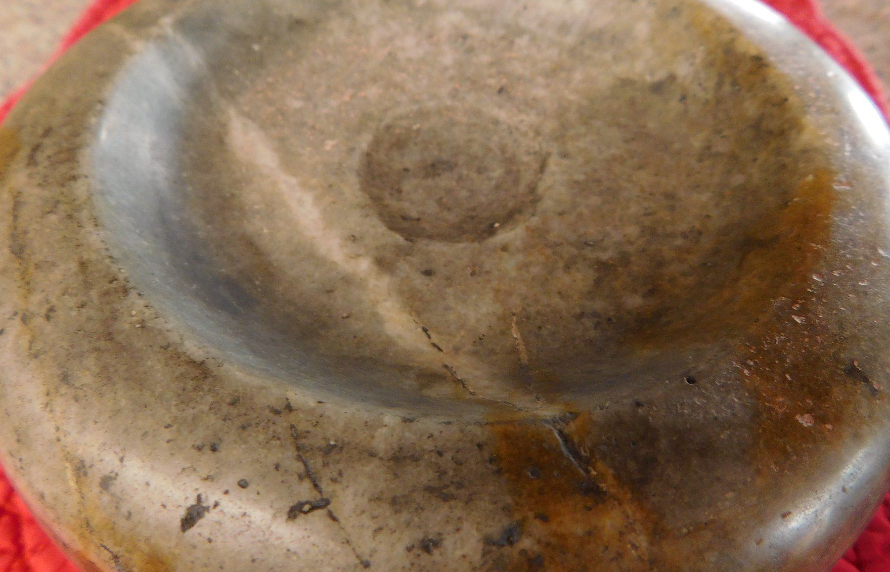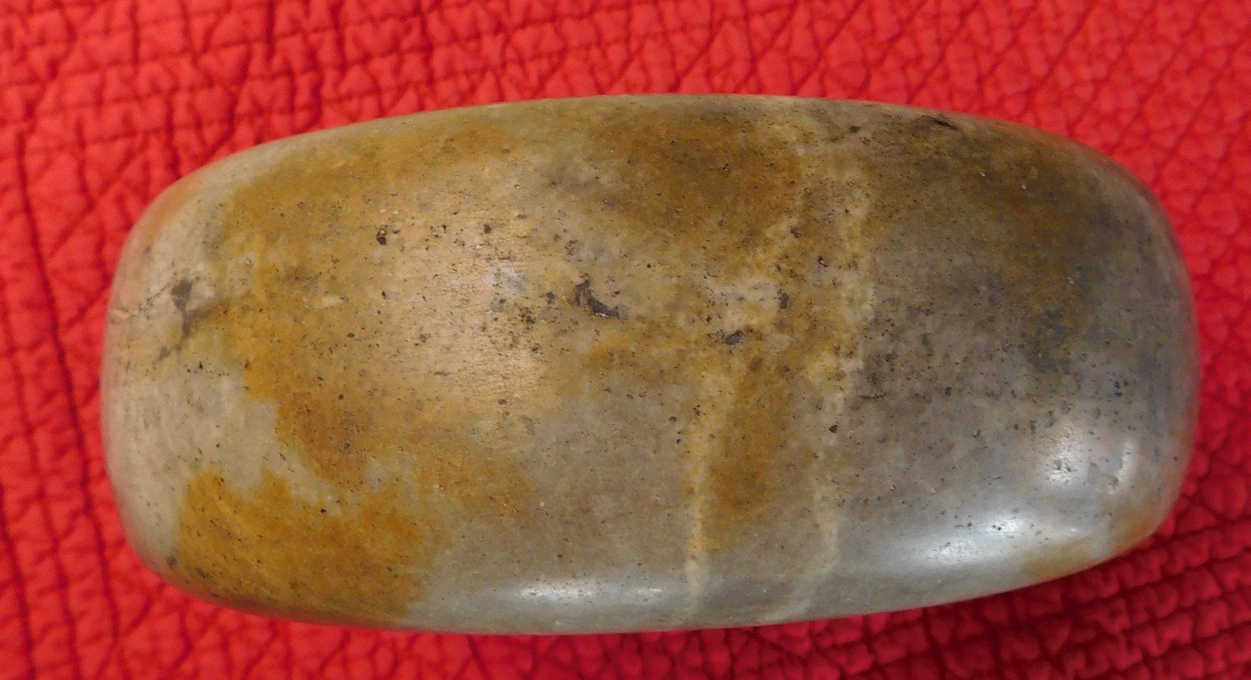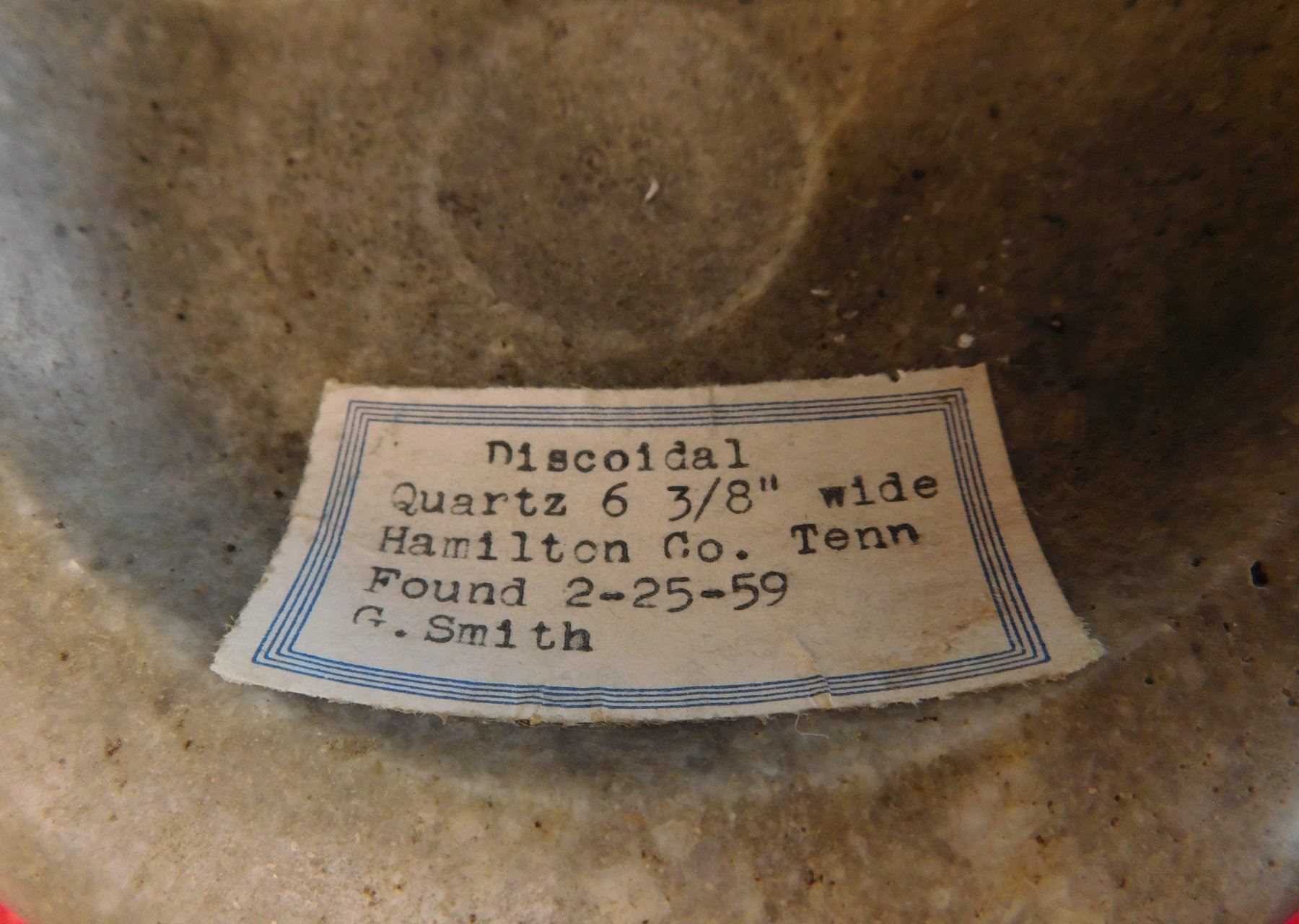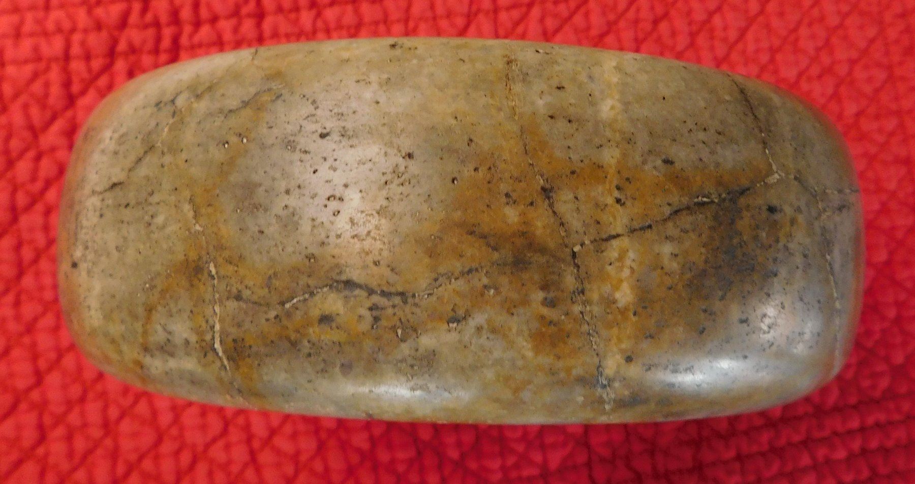 Double-Cup Discoidal, pre-historic item. Made of flint, the item measures 6 3/8" x 2 1/3". Hamilton County, Tennessee. Large discoidal, very fine. Condition: Good, see images. Shipping: $26.50 w/insurance and signature, due to value.