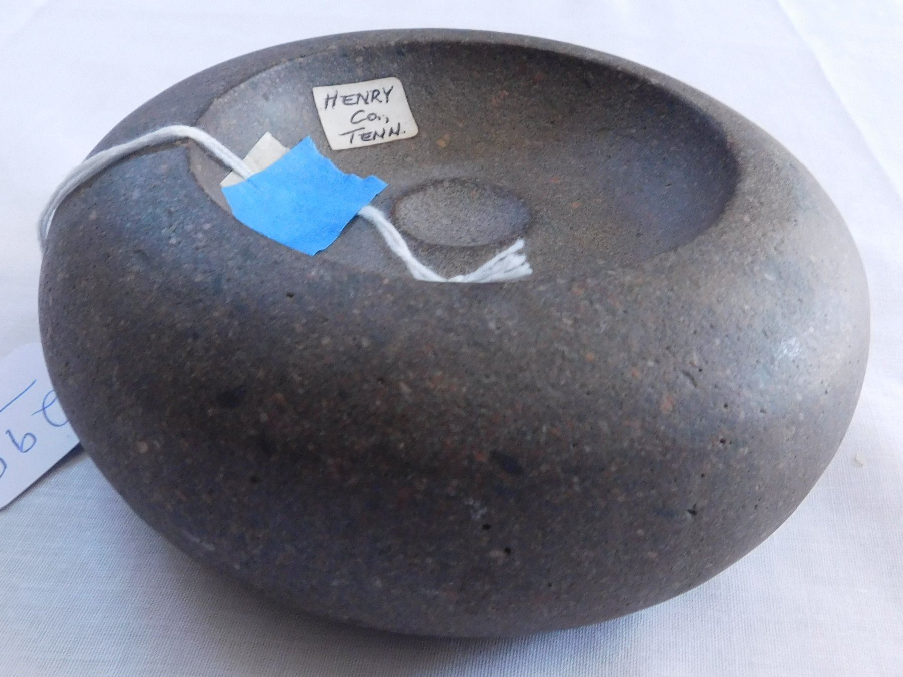 Double-Cupped Discoidal, pre-historic item. Made of stone, the item measures 5 3/4" x 2 1/8". Henry County, Tennessee. Condition: Good, see images. Shipping: $22.50 w/insurance and signature.