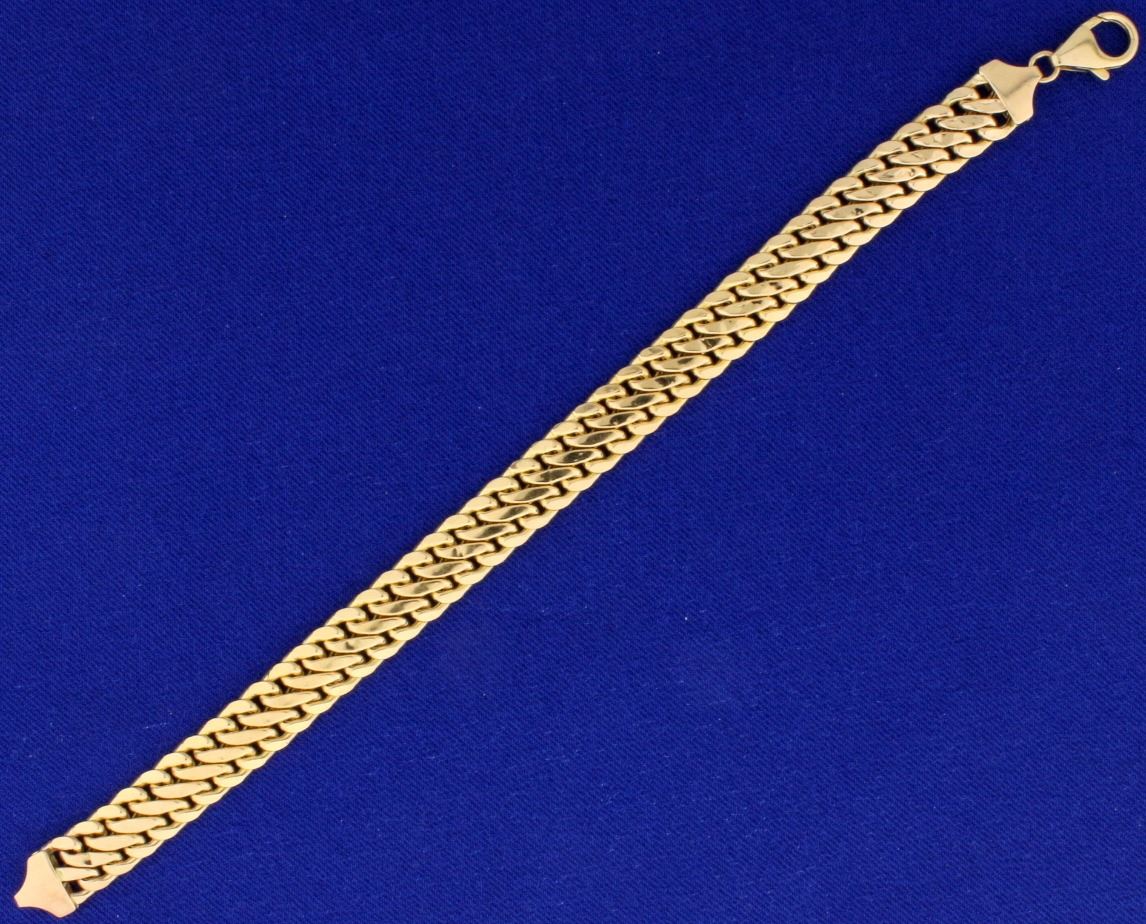 In 14k rose gold. 8.4mm wide with soft rose gold hue. 7" with lobster clasp. 8.0g.