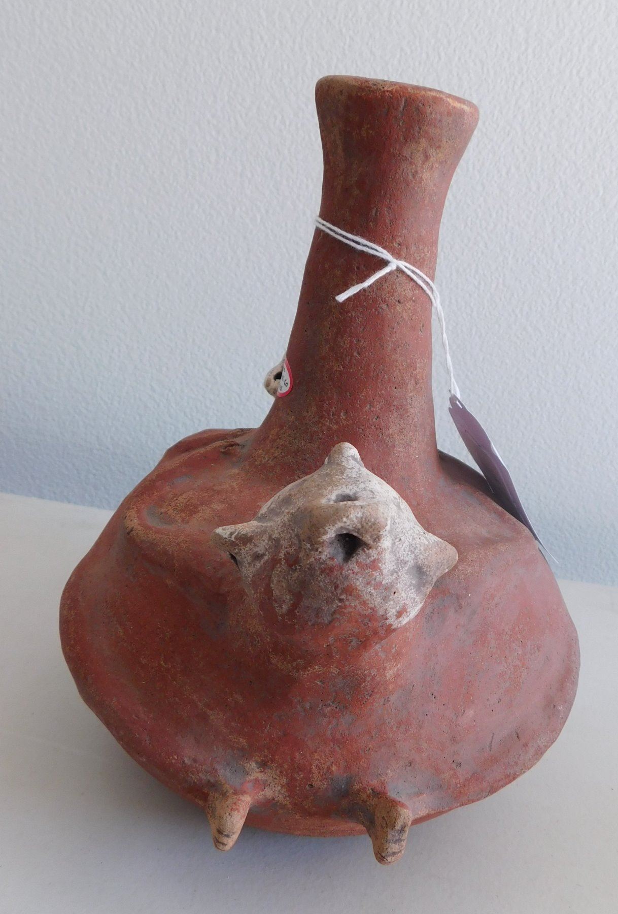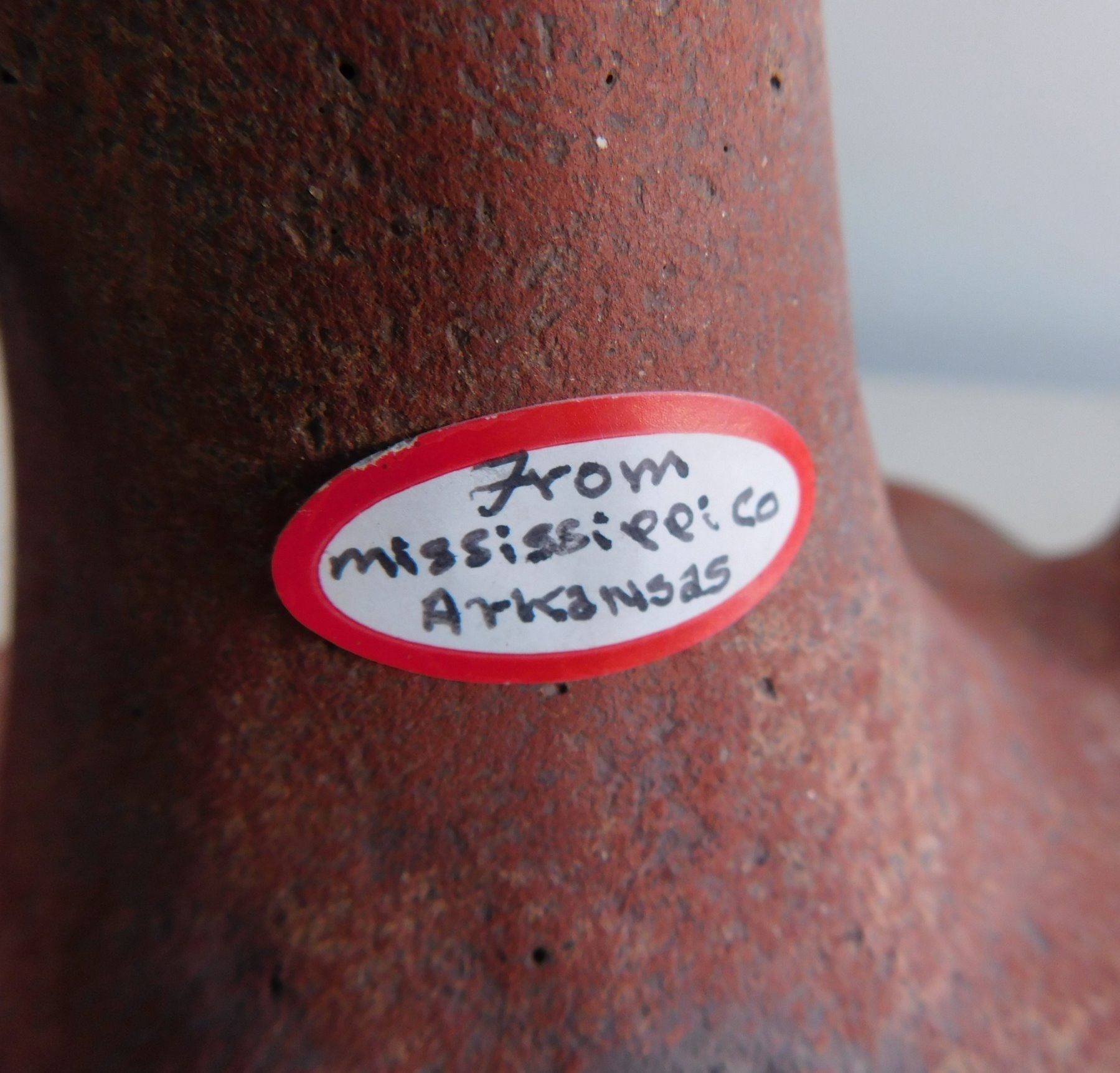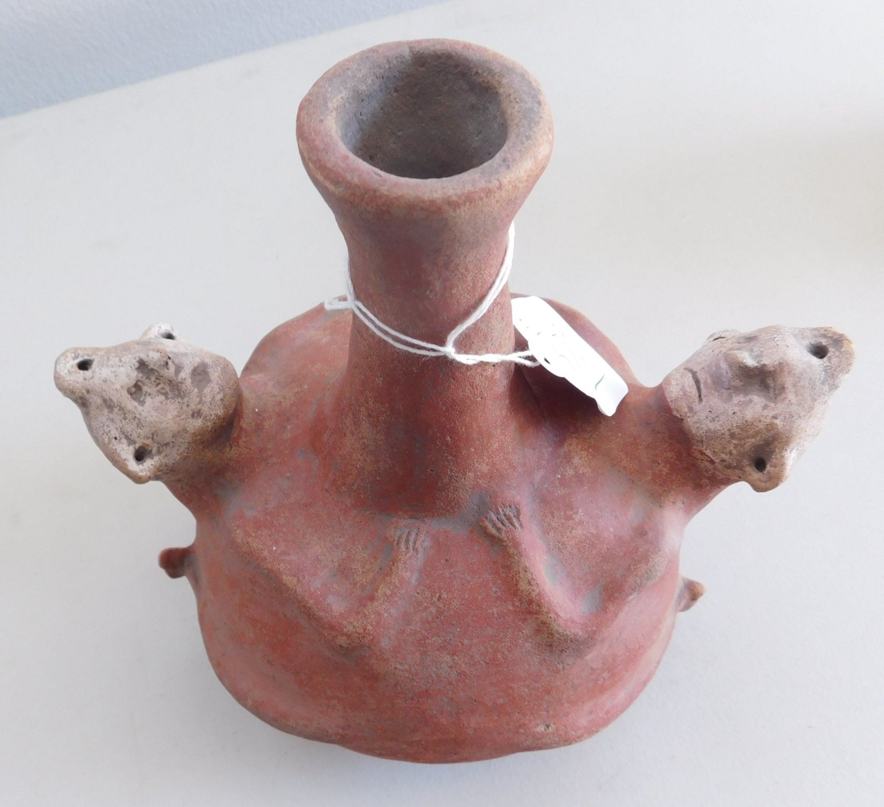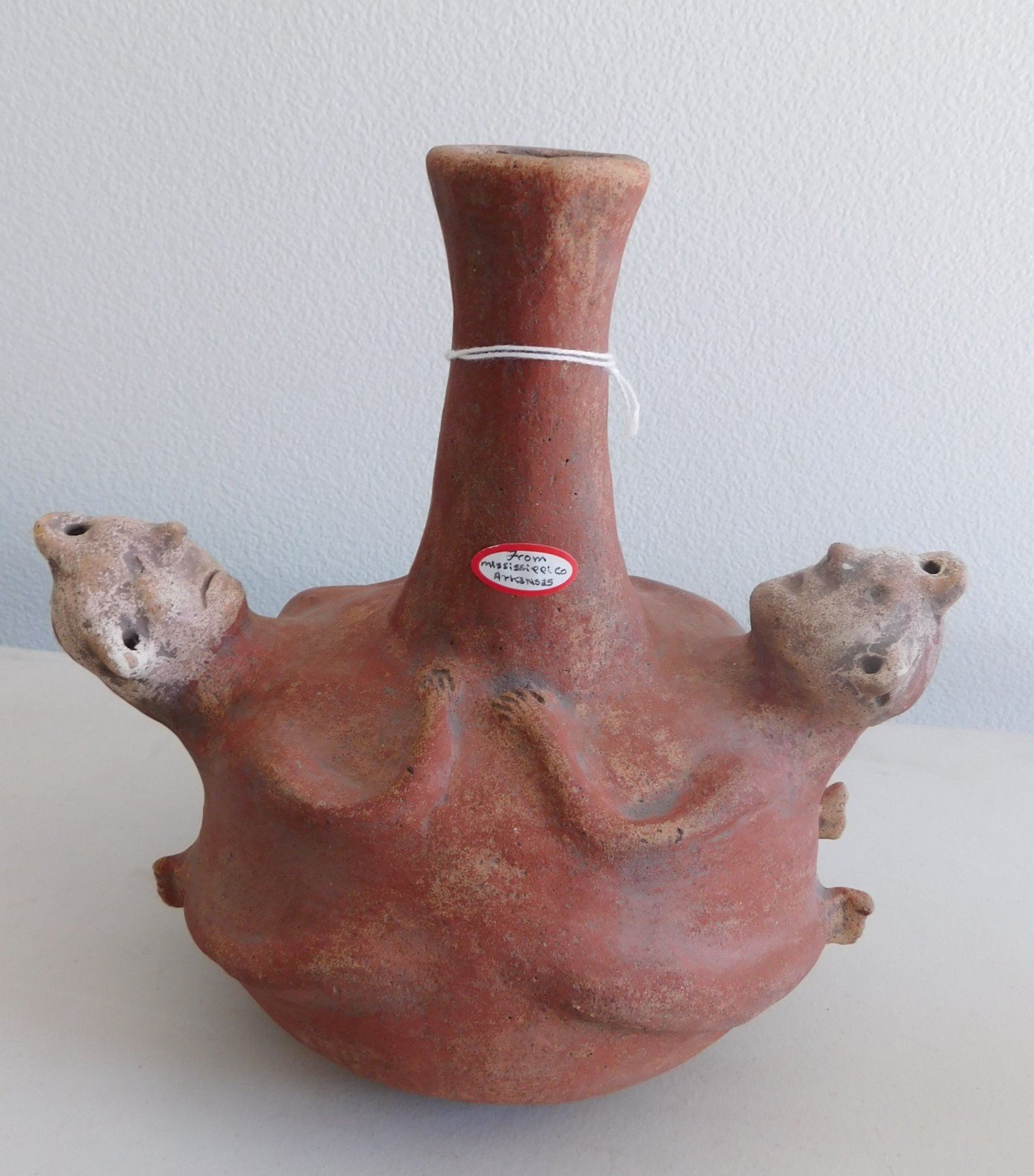 Double Effigy Pot, archaic period. Made of clay and paint, the item measures 9.5" x 9". Mississippi County, Arkansas. Condition: Good, see images. Shipping: $45.00 w/insurance and signature, double-boxed, USA estimate only.