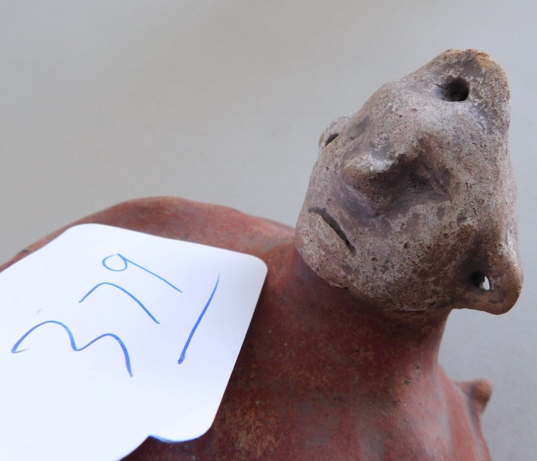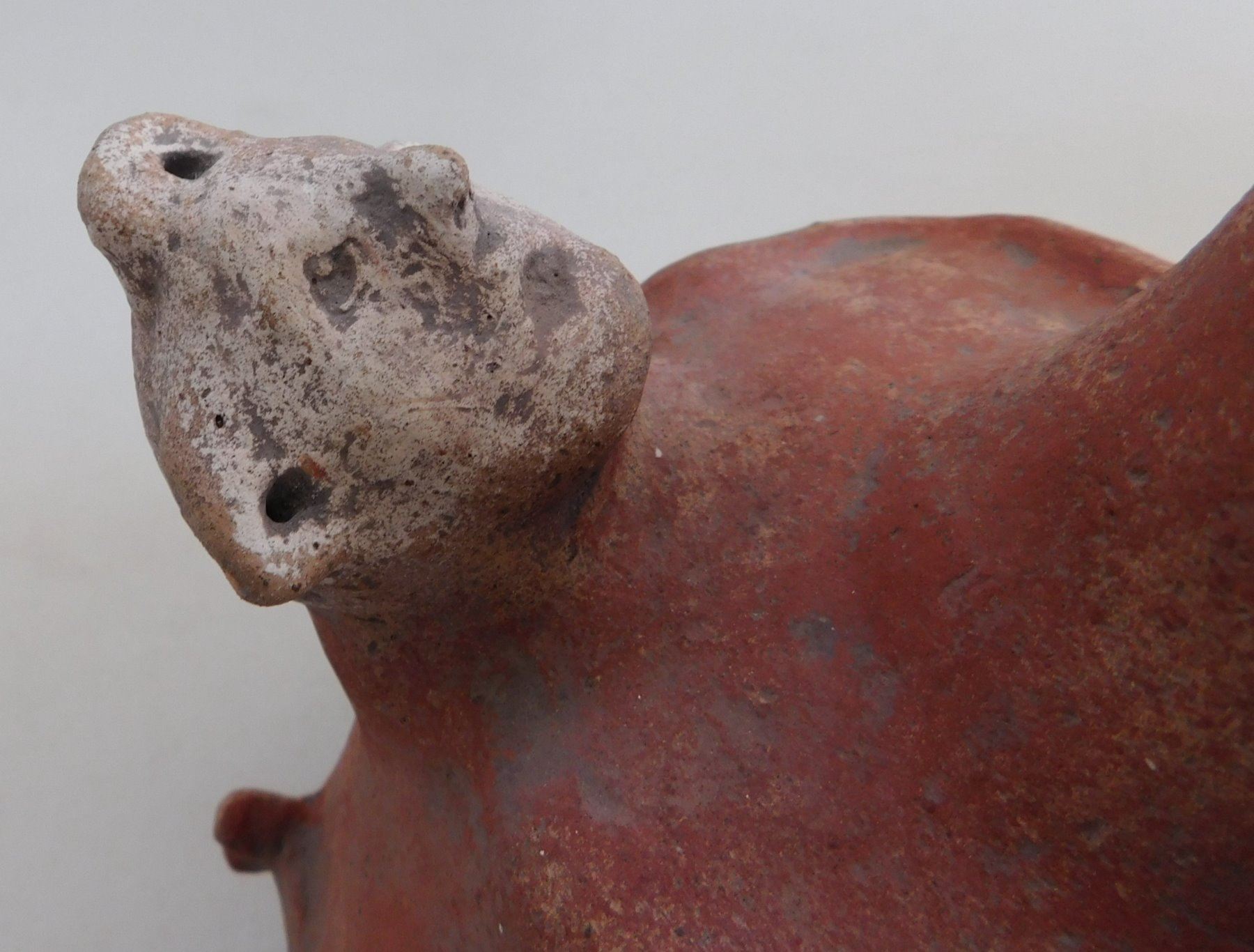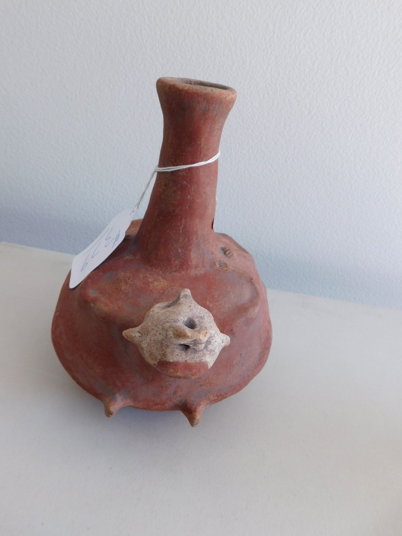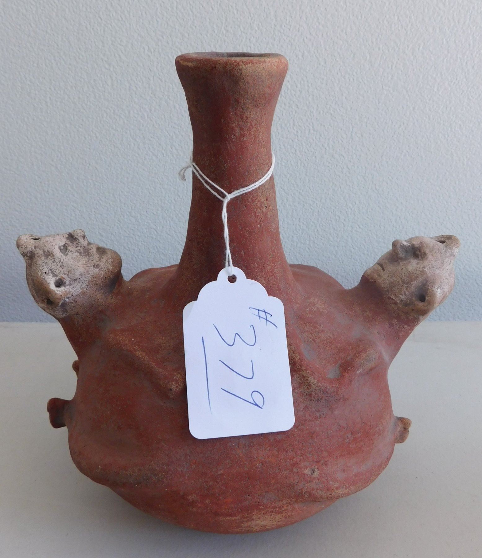 Double Effigy Pot, archaic period. Made of clay and paint, the item measures 9.5" x 9". Mississippi County, Arkansas. Condition: Good, see images. Shipping: $45.00 w/insurance and signature, double-boxed, USA estimate only.