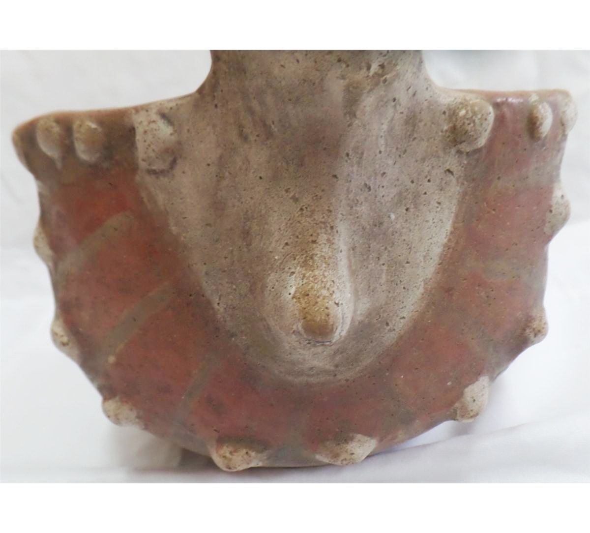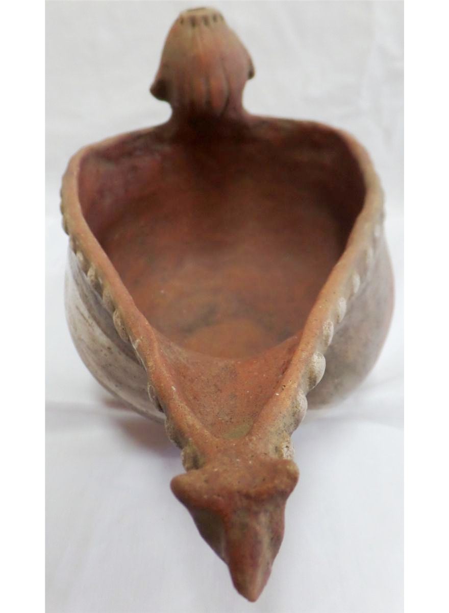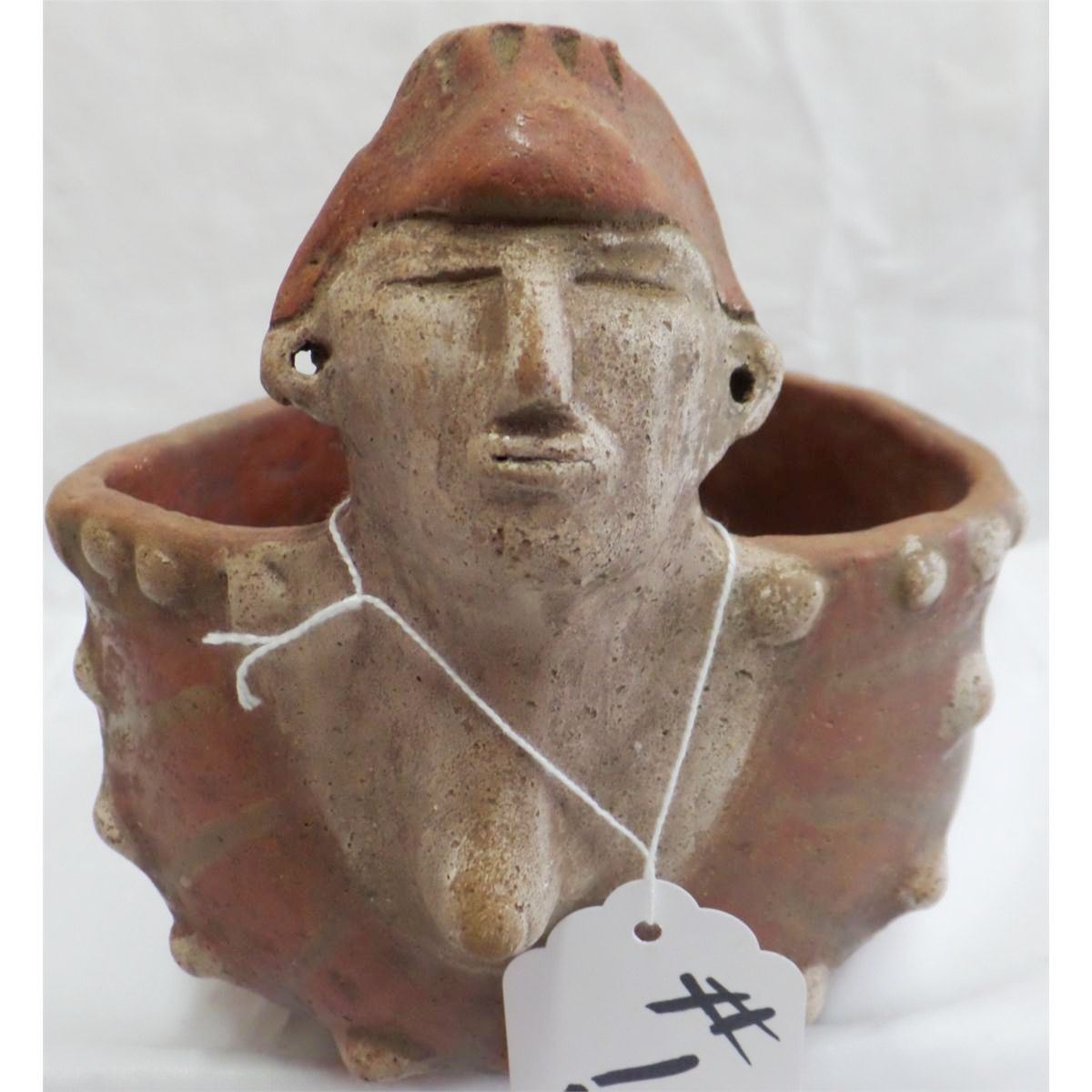 Double Effigy Quapaw-style Pot from Arkansas. Age unknown. Pot measures 11" x 5". This is a polychrome figural dipper. Condition: Very good, see images. Shipping: $24, must be double-boxed.