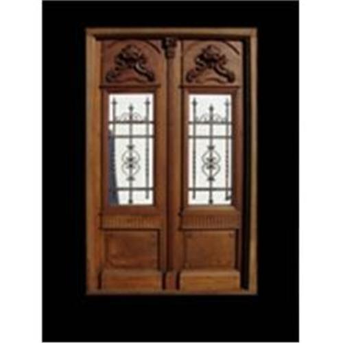 Double Entry Door with hand carved details and beautiful wrought iron work. Prehung and ready to use.