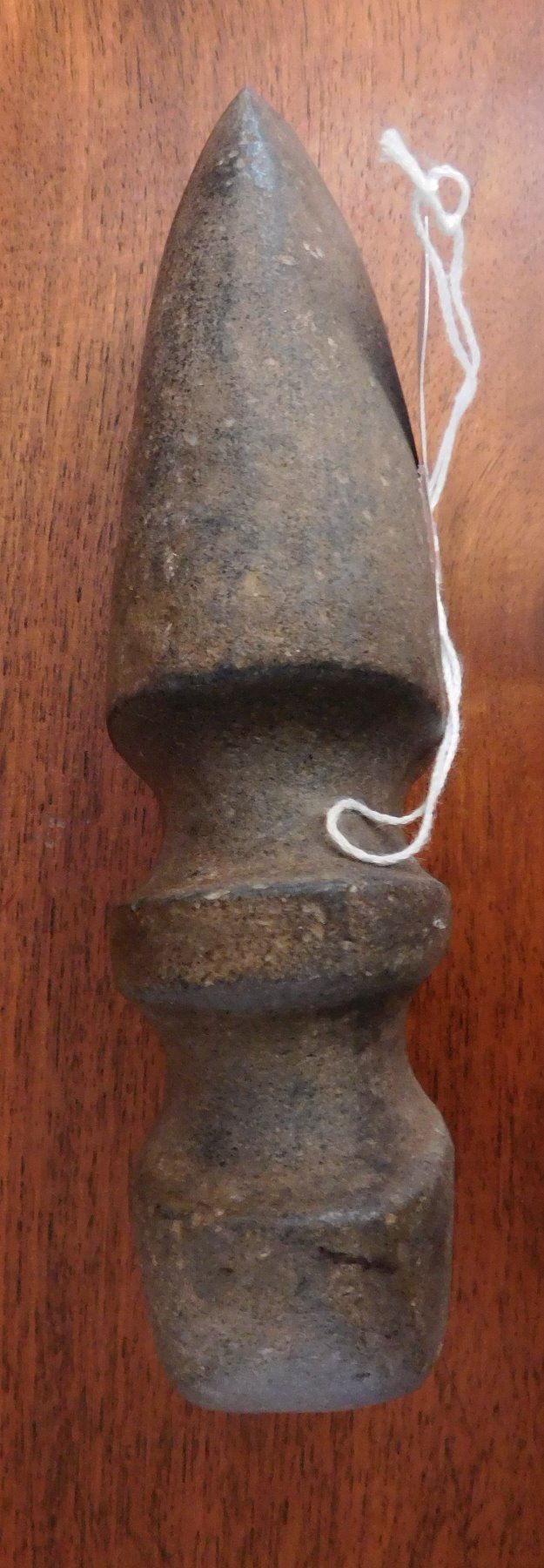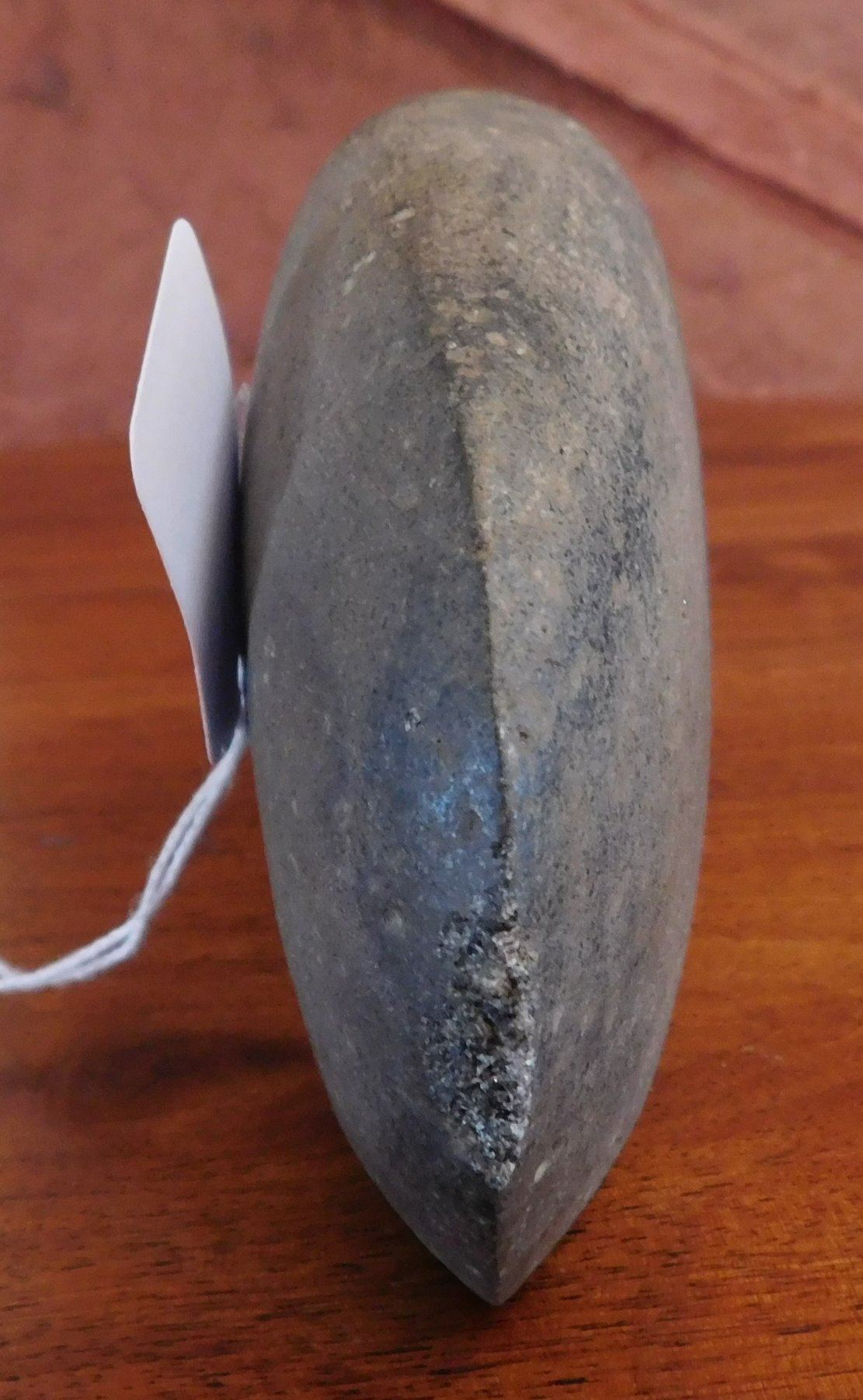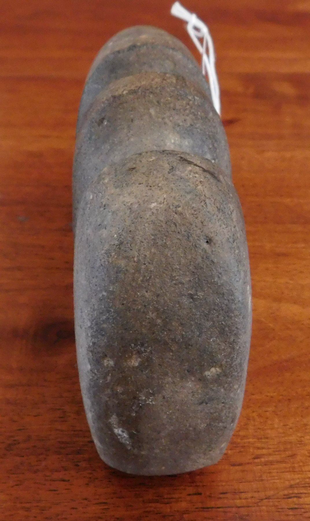 Double Groove Axe, pre-historic. Made of basalt, the item measures 7" long. Iowa. Rare double groove. Condition: Good, see images. Shipping: $16.50 w/insurance and signature.