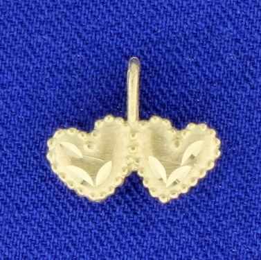 The pendant is 14K yellow gold and 1/2 inch long. 0.9g