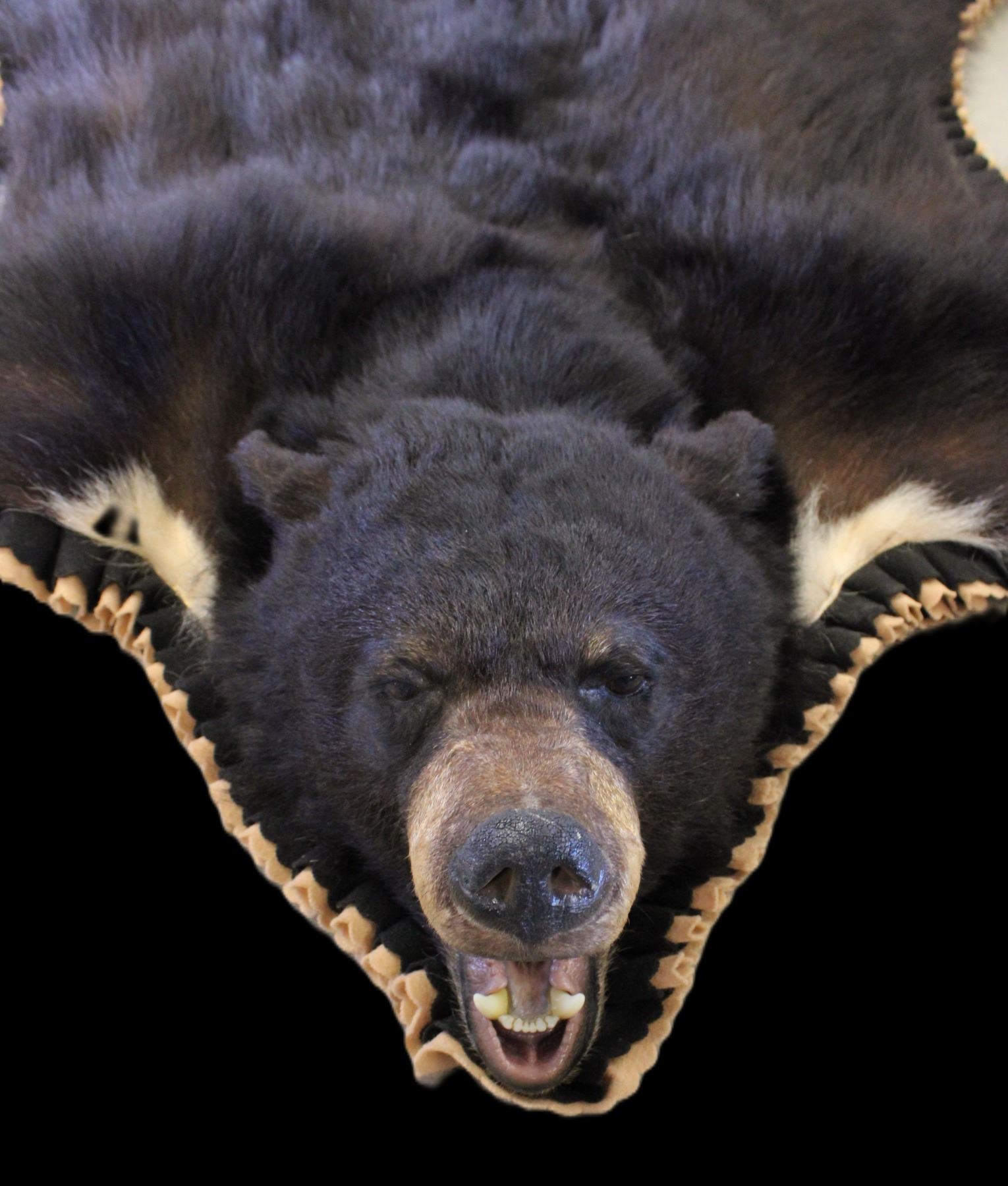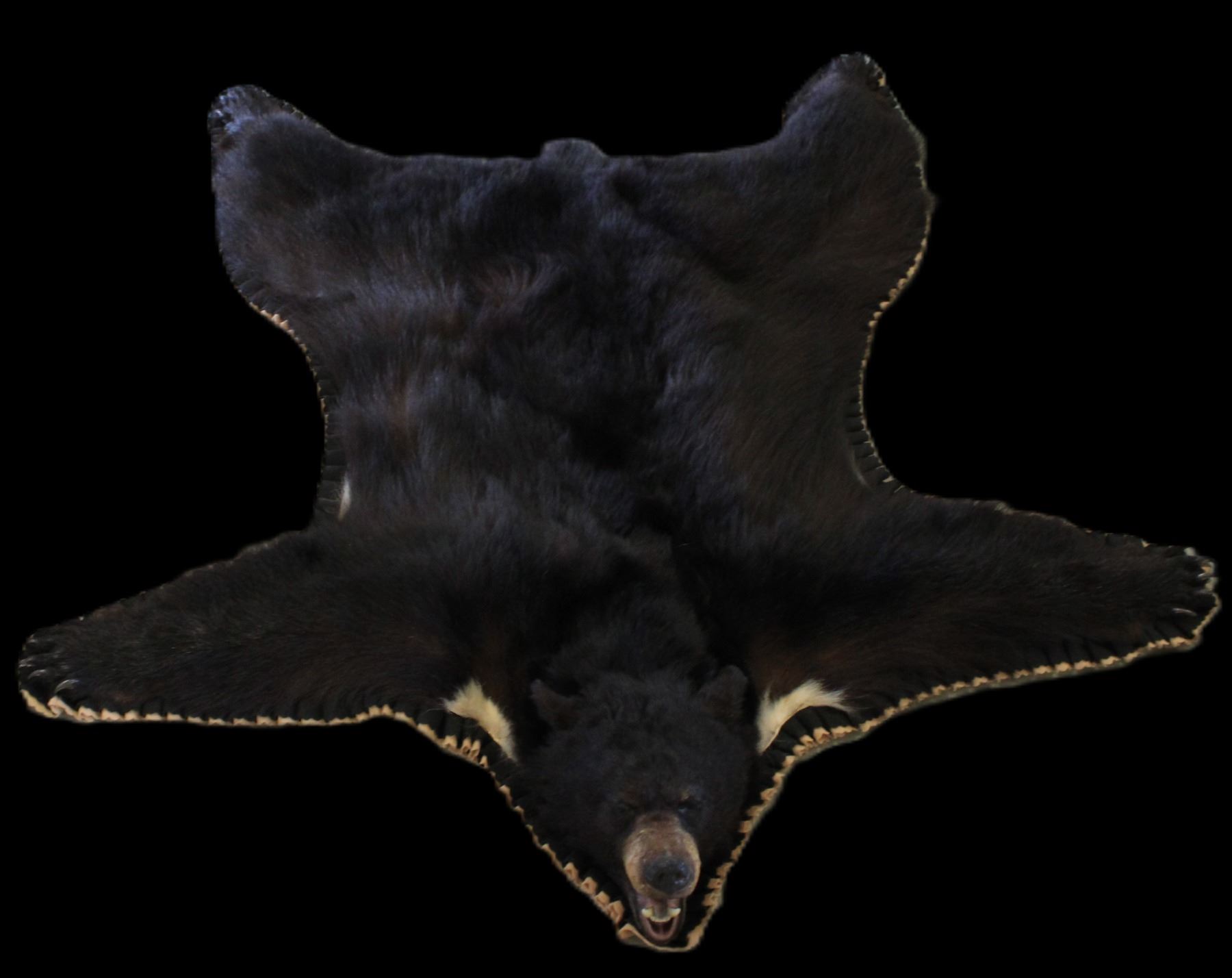 Double Matted Black Bear Rug- 59" Nose To Tail- 67" Across Front Legs- 51" Across Hind Legs- Hangs- Good Hair