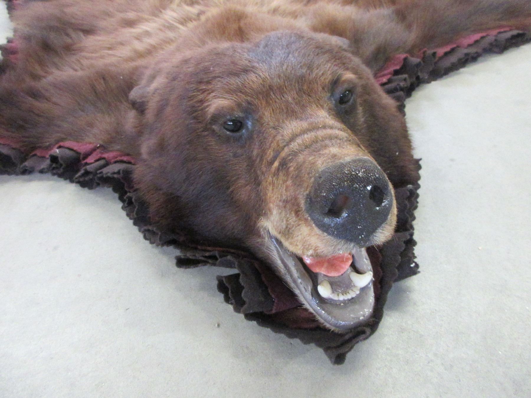 Double Matted Brown Colored Black Bear Rug- Can Hang From Wall- Nose To Tail 56"- Good Condition