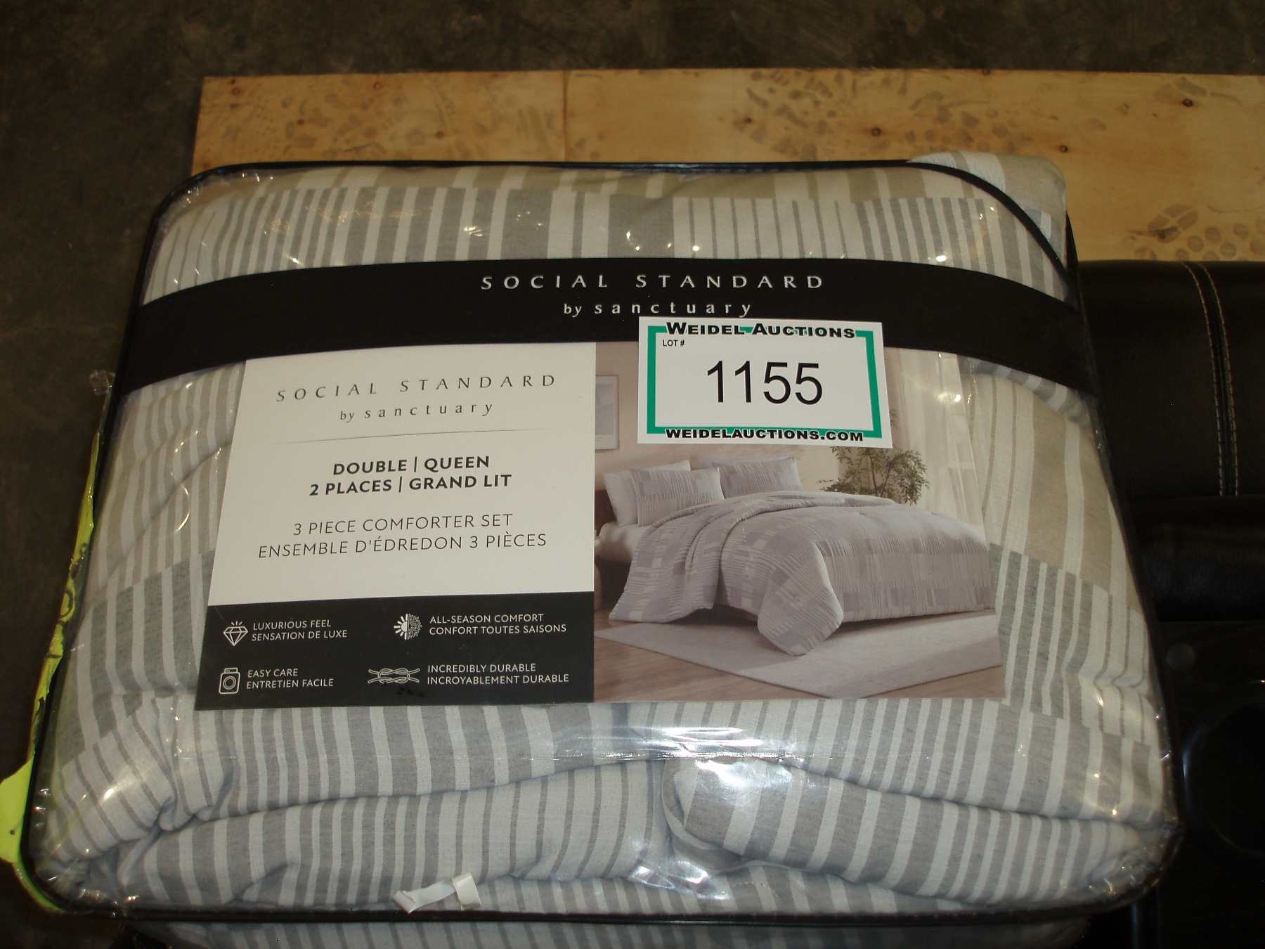 Double/Queen 3 pc Comforter Set, grey/white striped