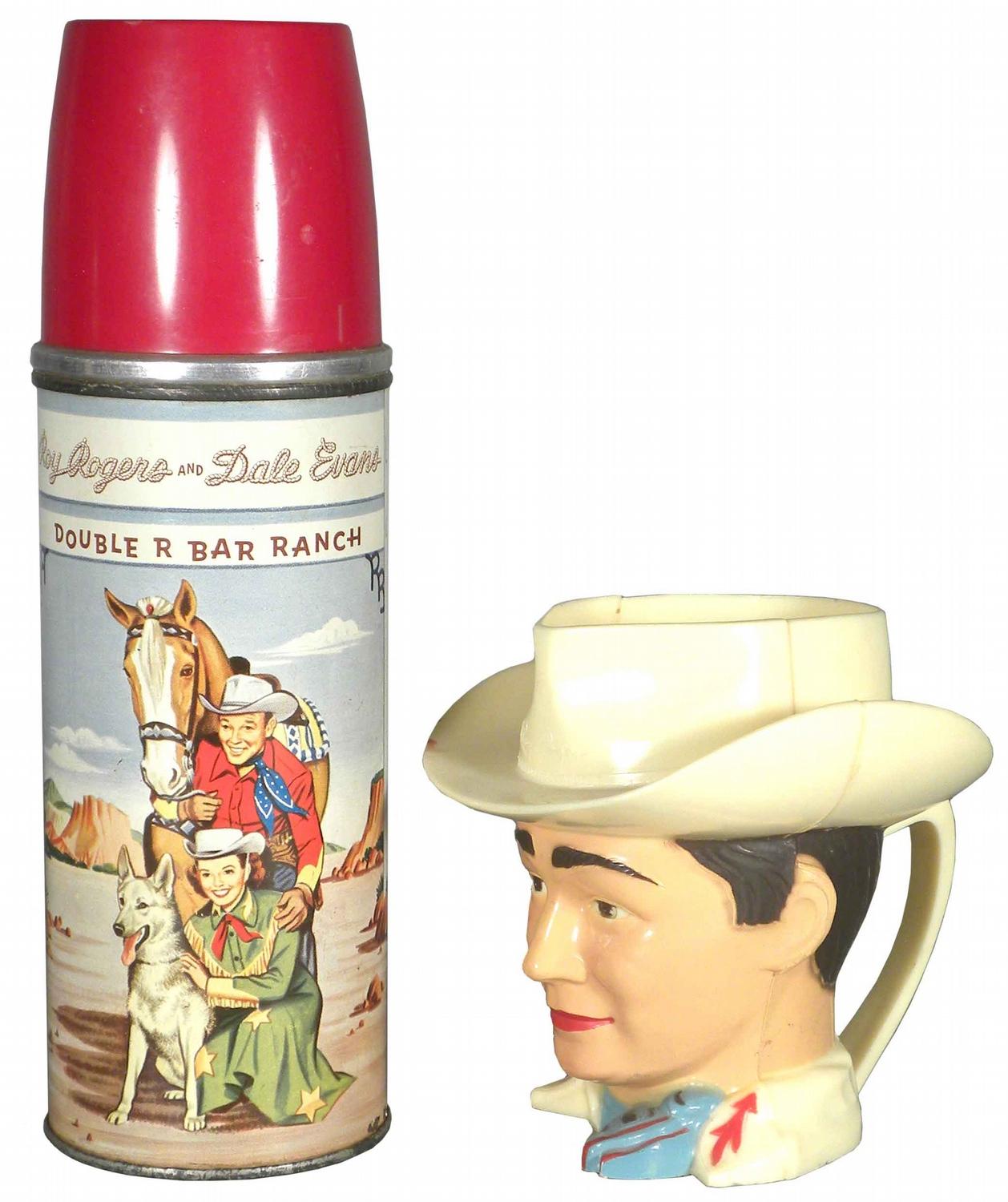 Roy Rogers and Dale Evans-Double R Bar Ranch Thermos and Roy Rogers Plastic Milk Pitcher. Both in excellent condition. Thermos measures 8 1/4 inches tall.