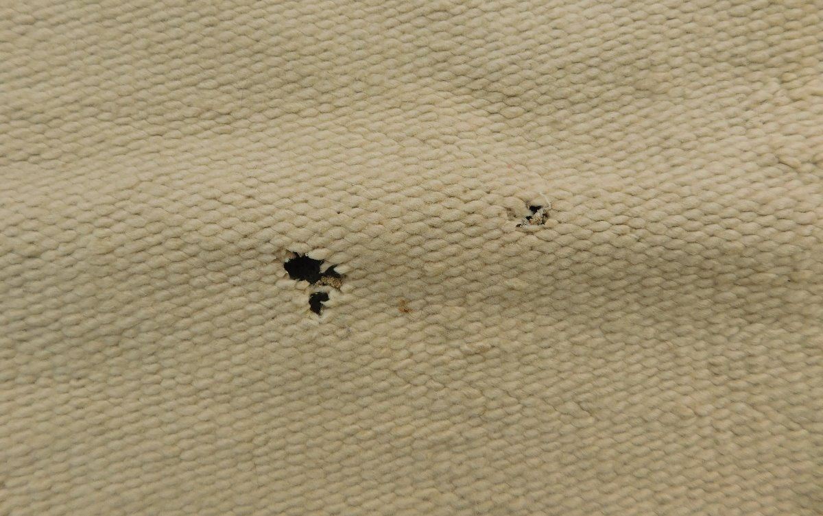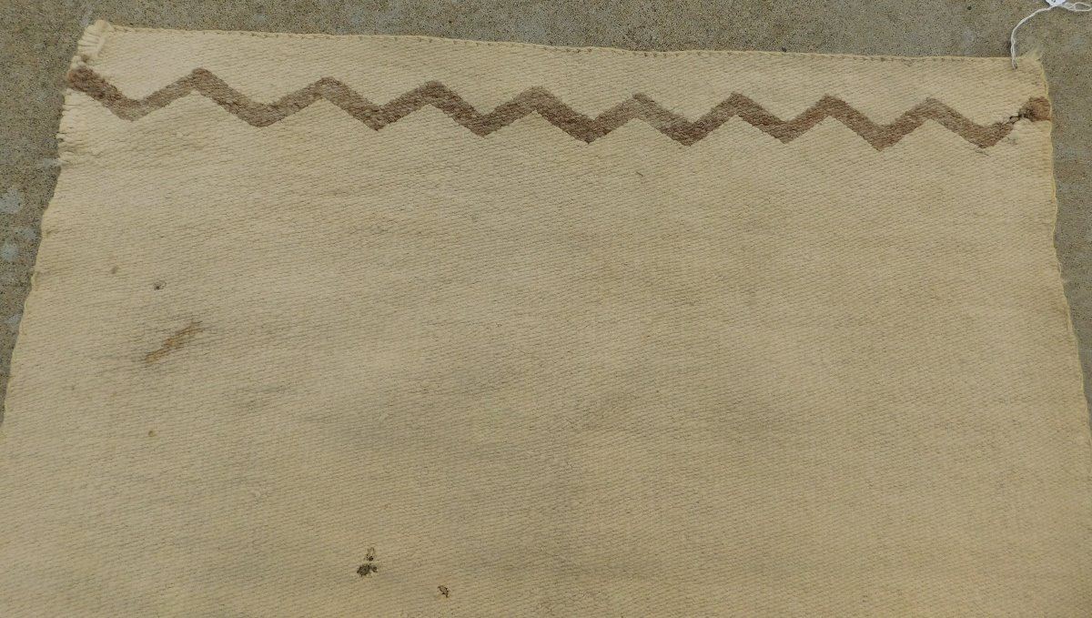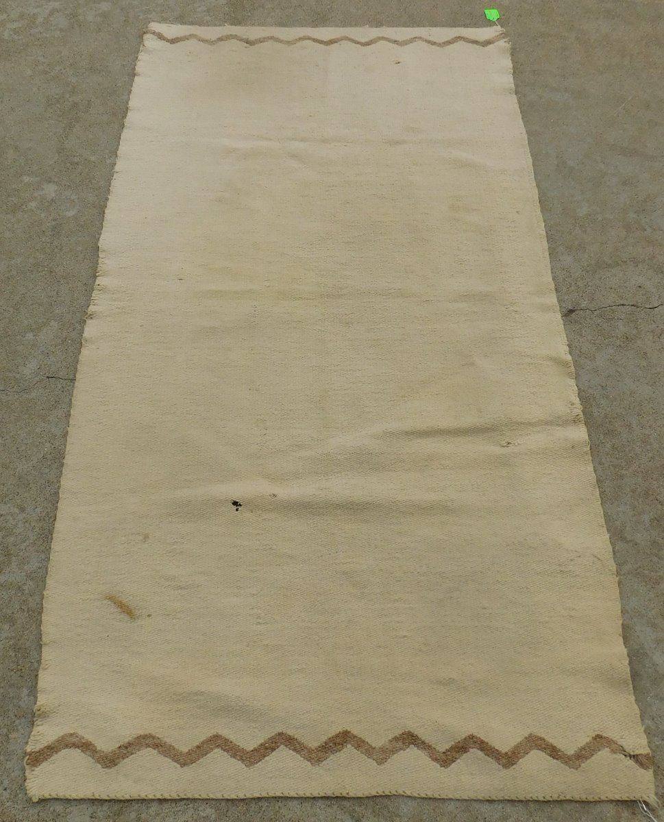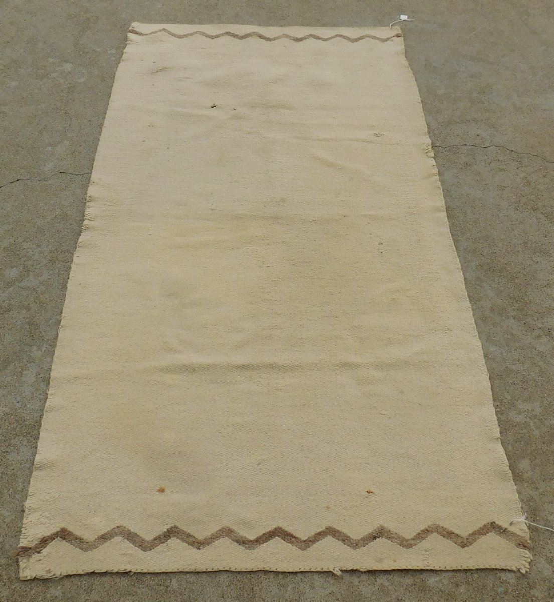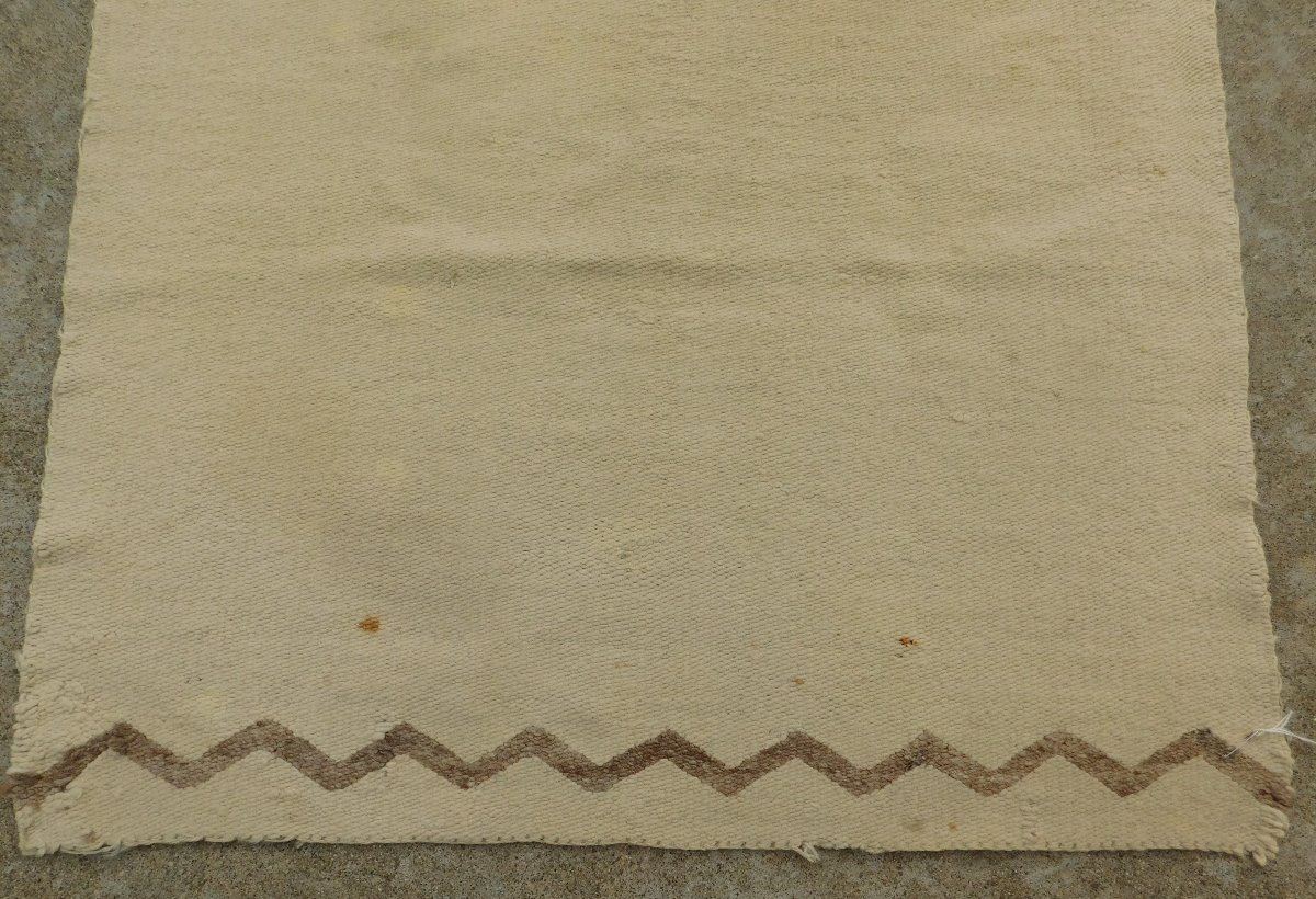 Double Saddle Blanket, circa 1900. Made of wool, the item is 60" long x 30.5". Navajo, New Mexico. Very plain, minor design on top and bottom. Condition: Fair condition, small hole, see images. Shipping: $24.50 w/insurance and signature.