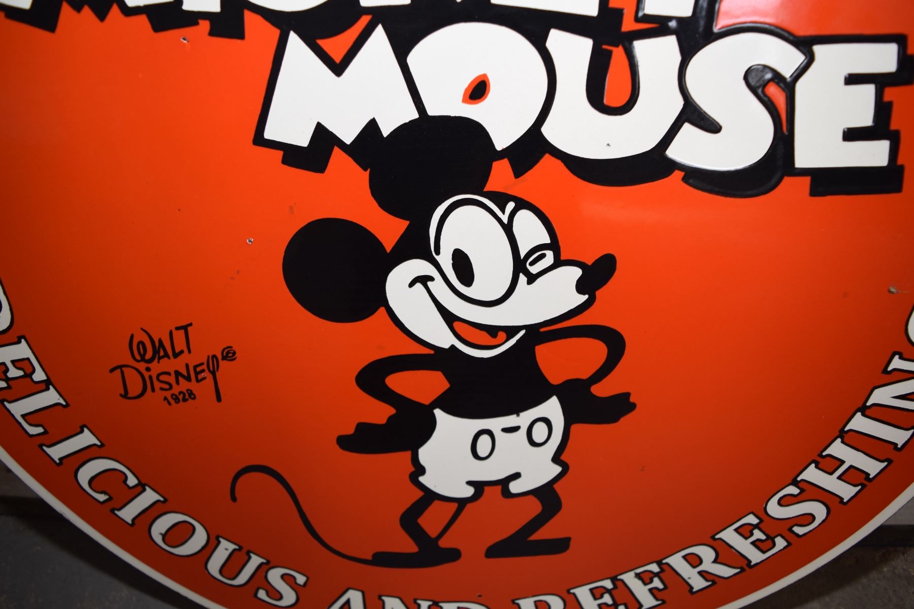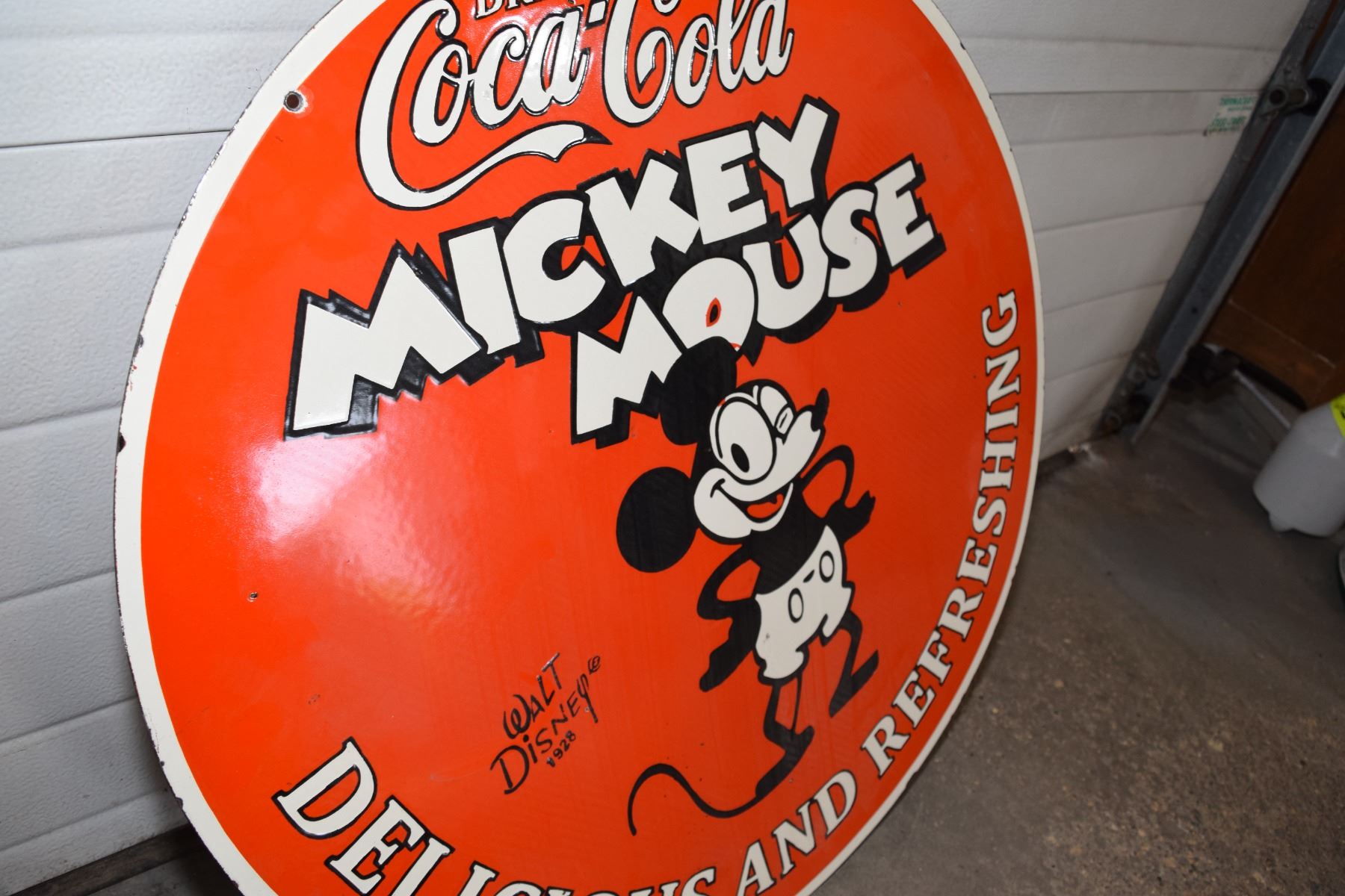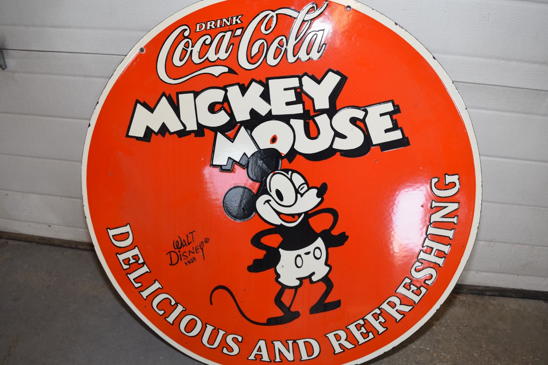 Double Sided Porcelain Coca Cola and Disney Sign -30" - Mickey Mouse