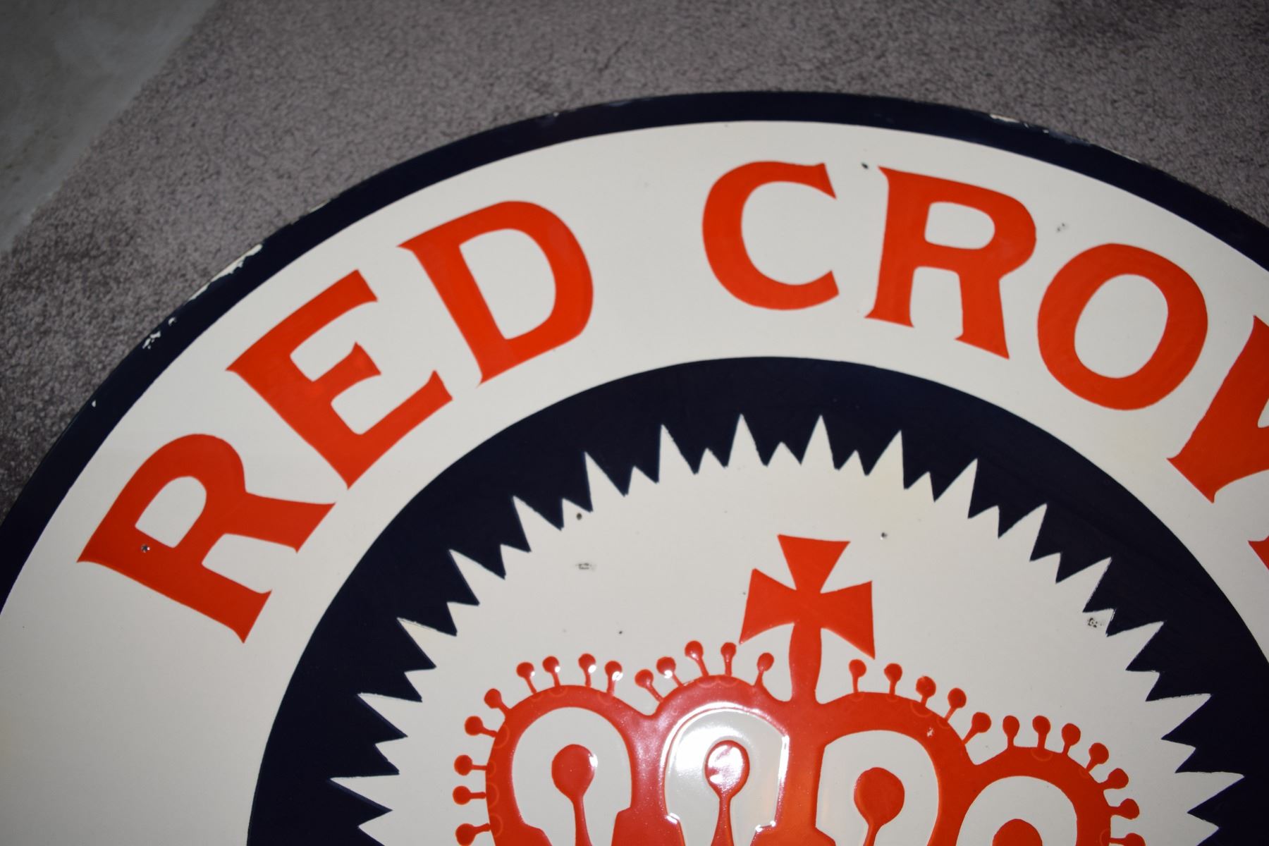 Double Sided Porcelain Sign - Royal Crown Gasoline 30"