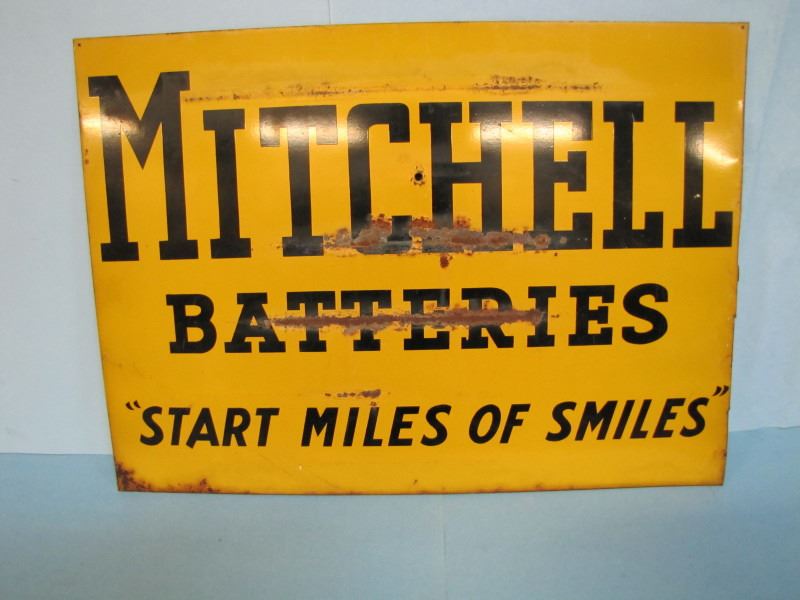 Double Sided Sign - Mitchell Batteries "Start Miles of Smiles"