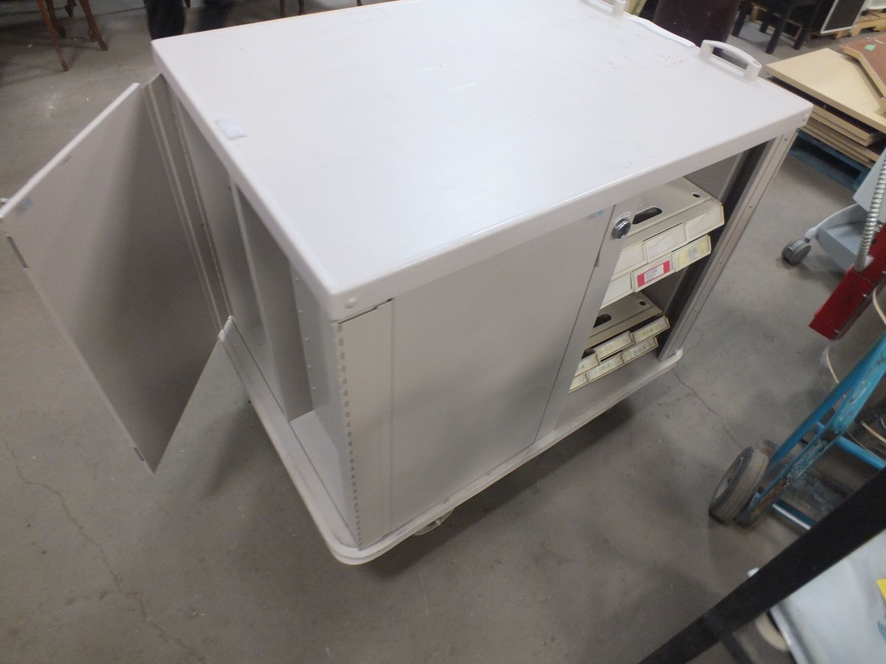 Double Sided Storage Cart On Wheels, 41"l 30 1/2"w 38"h...used