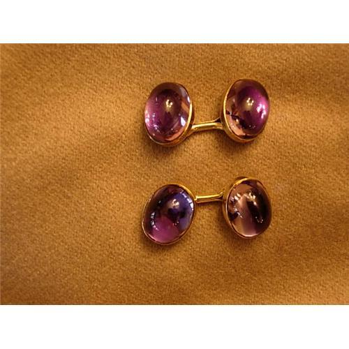 Attractive 14kt yellow gold foil back amethyst cabachon circa 1900 Victorian double sided cufflinks in very good condition. Nice look. Great antique cufflinks