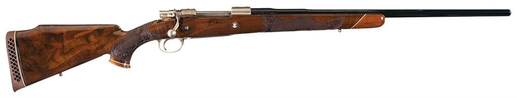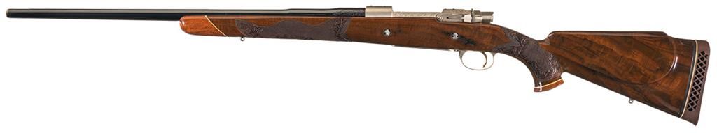 Double Signed Engraved Gold Inlaid Custom Belgium Browning High Power Bolt Action Rifle with Carved Stock