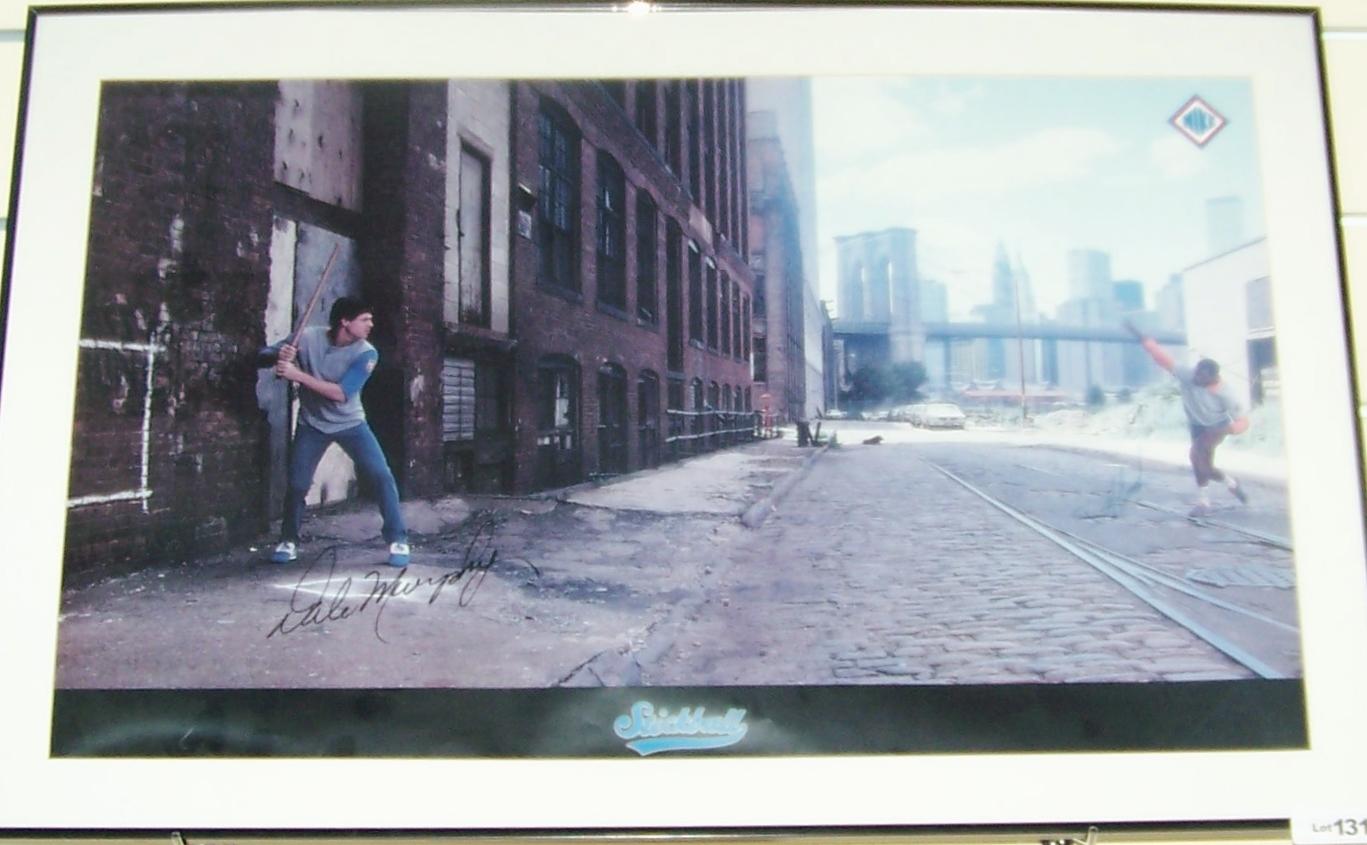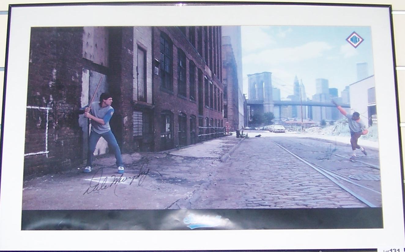 Double Signed NIKE "STICKBALL" Poster Signed by Dale Murphy & Doc Gooden framed