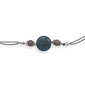 7.5" + 1" extension double strand cord fashion bracelet with jasper beads and dyed stone. This item contains nickel free and lead free base metal.