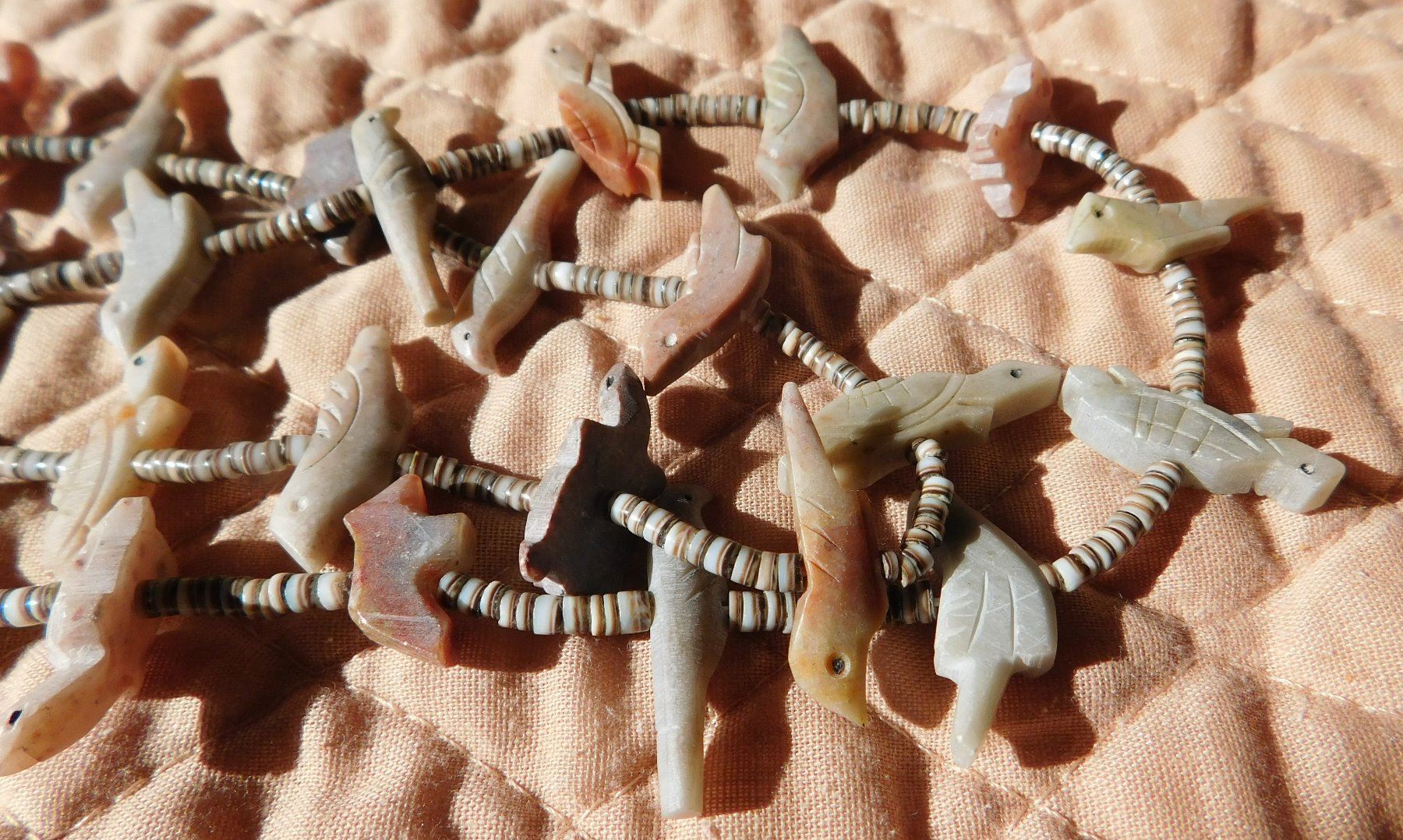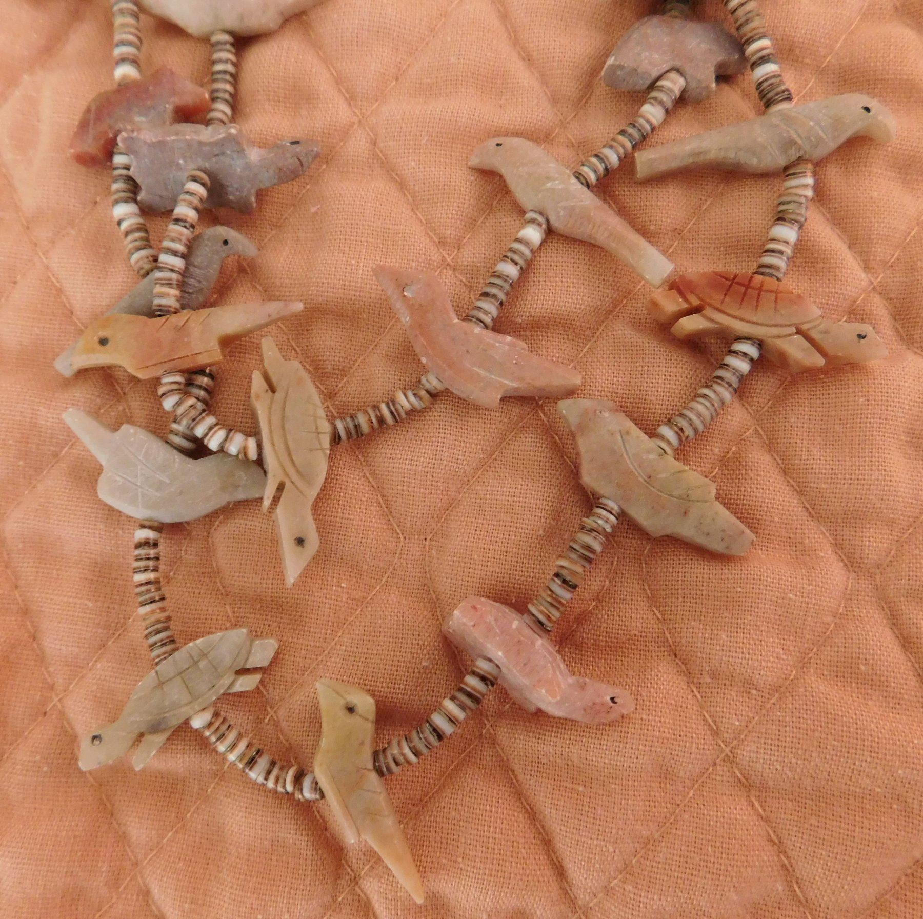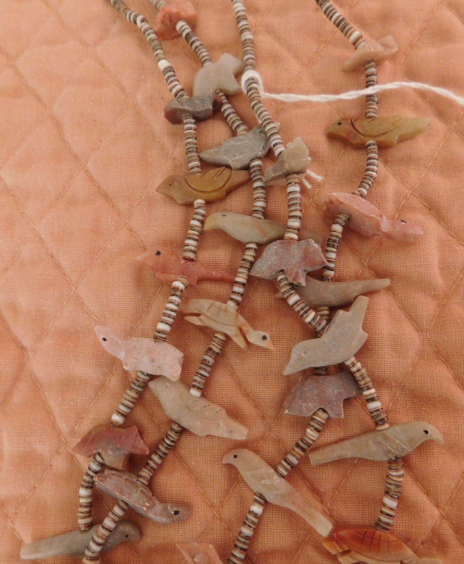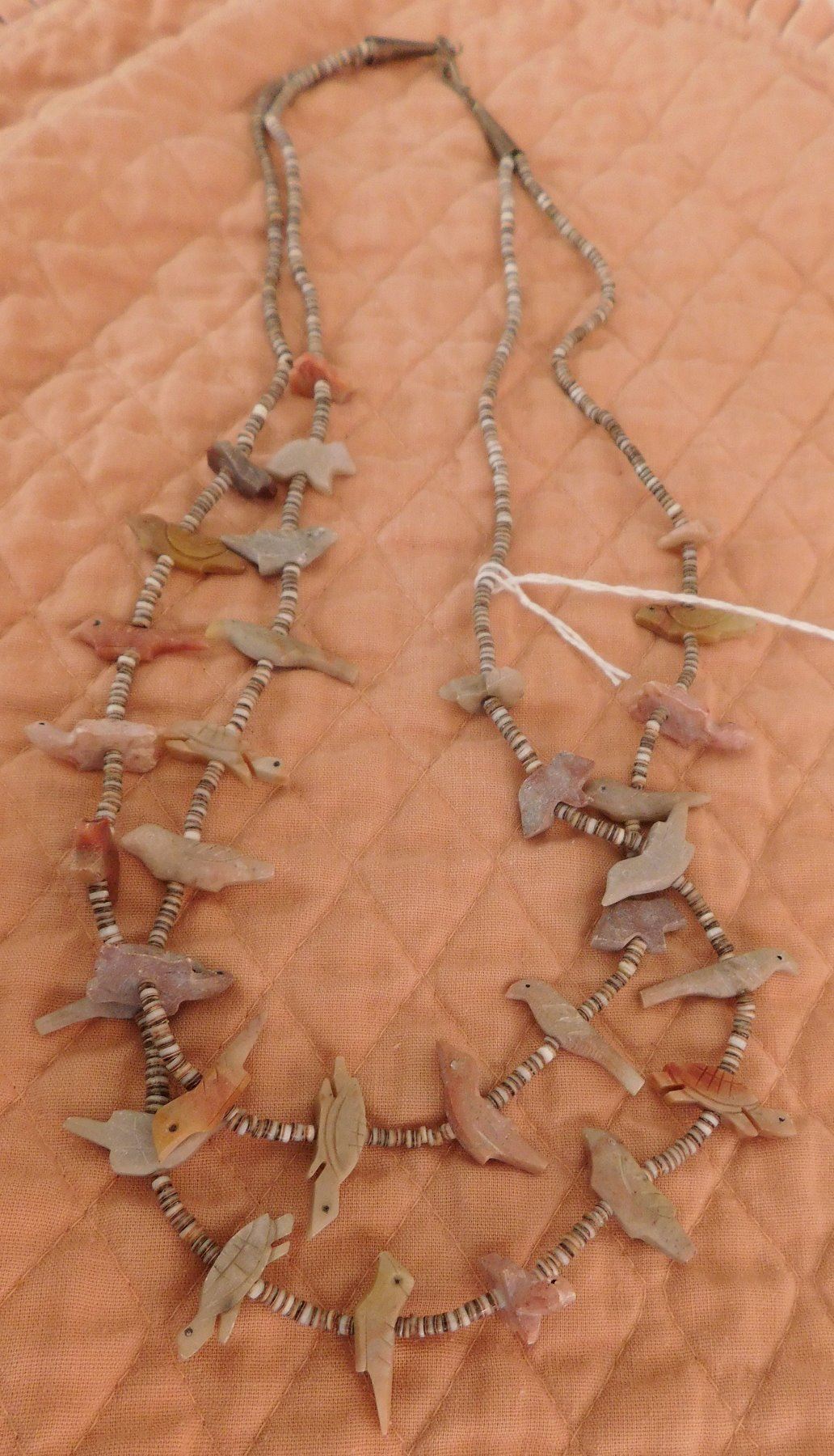 Double Strand Heishi Necklace, c. 1970s. Made of heishi shell and stone, the item hangs about 13" as worn. Santo Domingo-Kewa, New Mexico. Condition: Good, see images. Shipping: $12.50 w/insurance and signature.