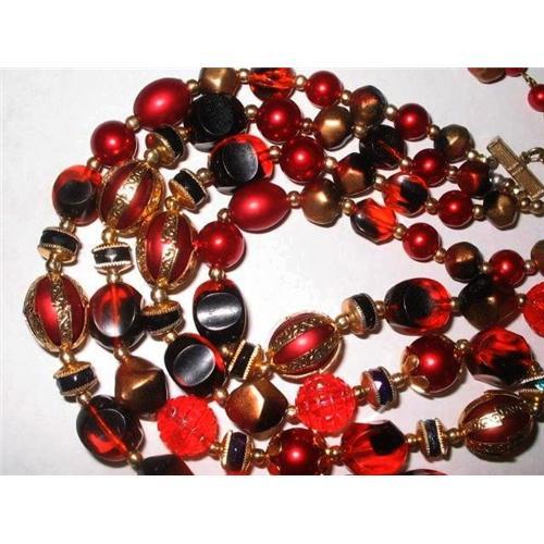 <tr><td>Title:Double Strand Lucite Red, Gold & Black Necklace</td></tr>