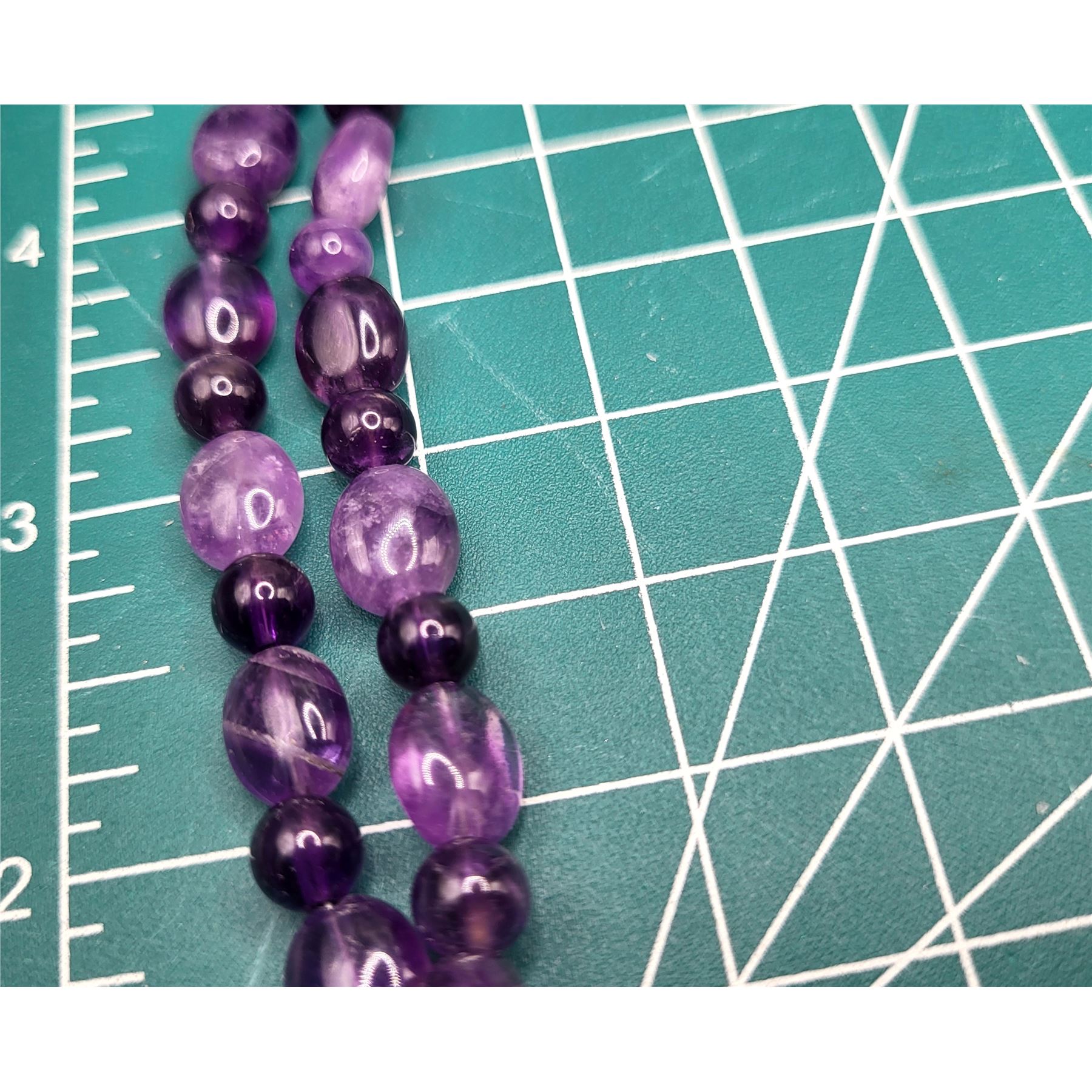 This necklace is strung with graduating sizes of round and oval, polished beads, strung on 2 strands that are approximately 18" with an additional 2" sterling silver link extender. The necklace latches with wire hook that attaches to the links, which are secured to the end caps. Admin: 33119/6lg