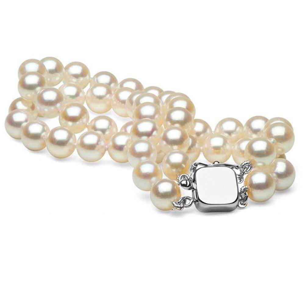 Double Strand White Akoya Pearl Bracelet, 7.0-7.5mm