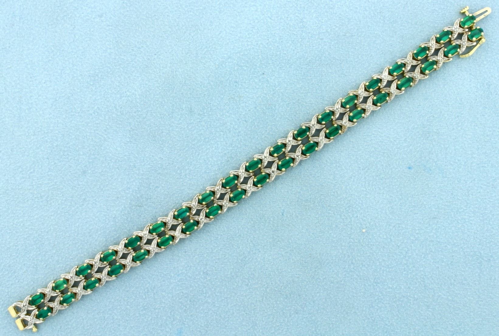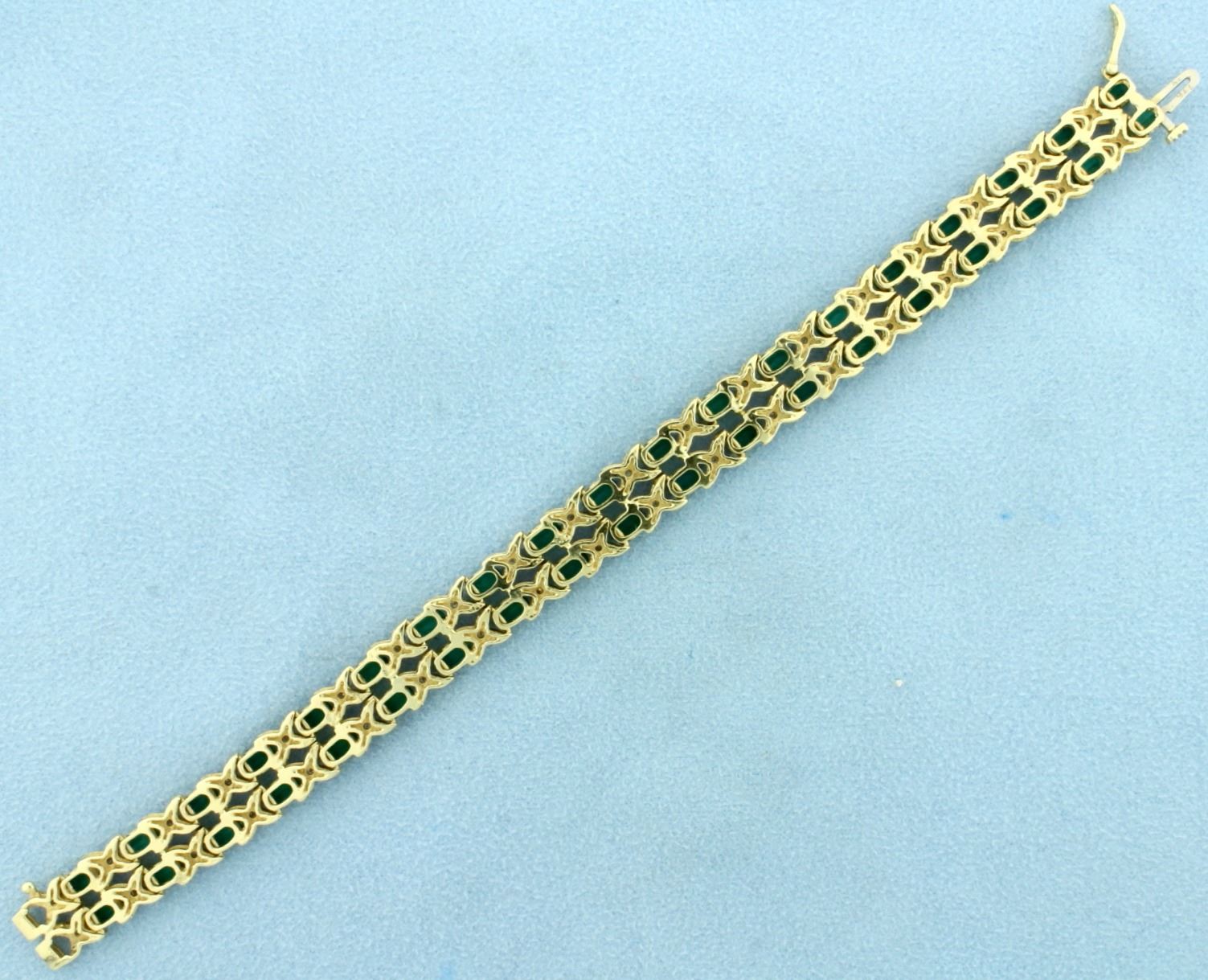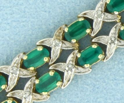 In 10k yellow and white gold. Contains thirty eight natural 5x3mm oval cut Tsavorite Garnet gemstones with bright green color and excellent clarity. Also contains thirty eight high quality 1/2ptct diamonds. 7" long, with safety clasp. 16.8g.