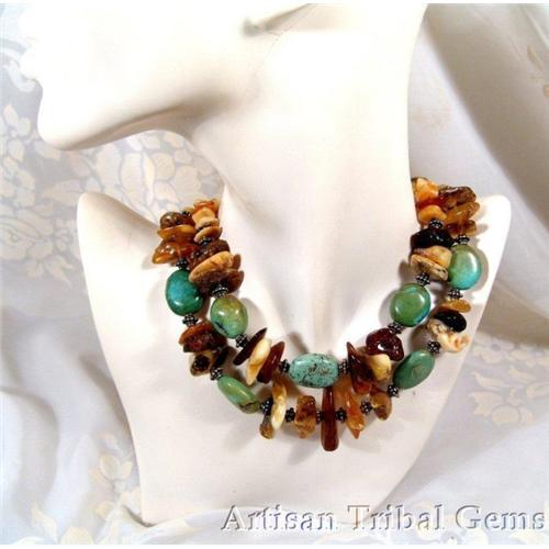 <tr><td>Title:Double TURQUOISE Baltic Amber Sterling Choker</td></tr>