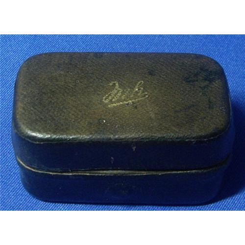 Rare Leather Covered double portable Inkstand. The cover opens with a button to reveal two snap covered Inkwells & a Pen Wipe. The Inkwells are both in mint condition and are both covered with a snap cover to prevent evaporation of ink. The entire assembly including the pen wipe are in excellent condition. From washington ave antiques.
