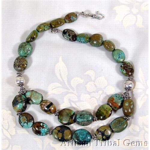 Payment by paypals MUST BE A CONFIRMED address. THANKS!<p>This choker is not a traditional turquoise nugget necklace BUT an enormous handcrafted Double strand. Fashioned from chunky turquoise nuggets this is an extraordinary piece of artisan jewelry. Accented with the finest sterling silver the round silver beads have a diameter of 14mm. (25mm=1") The gram weight is an incredible 173 and Vera has finished this necklace to perfection with a bold 28mm sterling silver 's' hook. Classy and sure to draw attention for those that want the BEST in BOLD ORIGINAL jewelry. The necklace has a length of 17.5". A creation I am sure you would be proud to give or receive!
