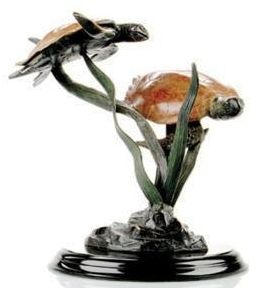 Double Turtle Bronze Sculpture - 20.5"H 15.5"W 15 "D - Great Attention To Detail - Beautiful Finish - Lost Wax Cast