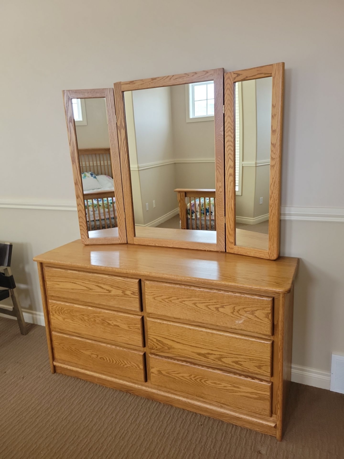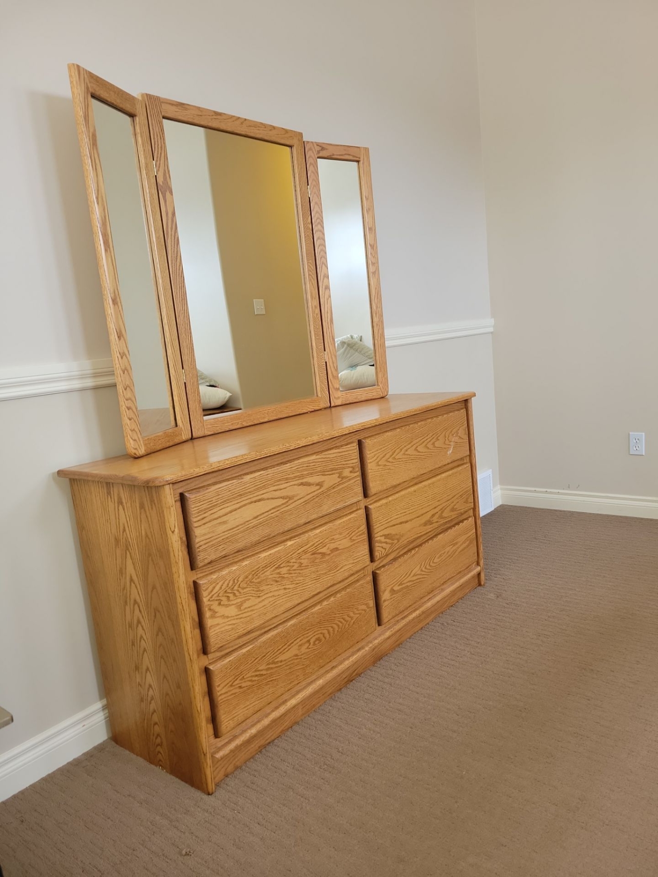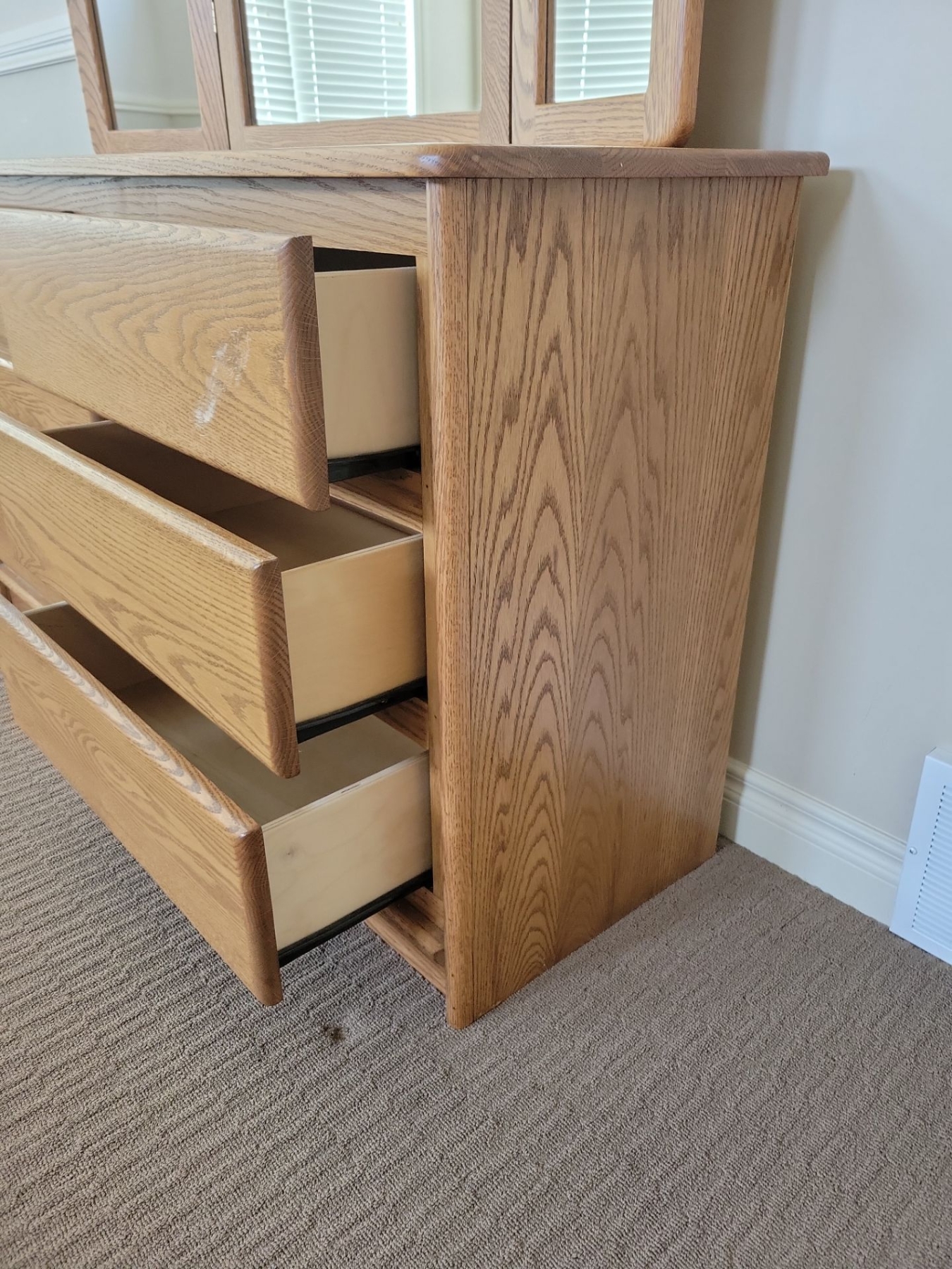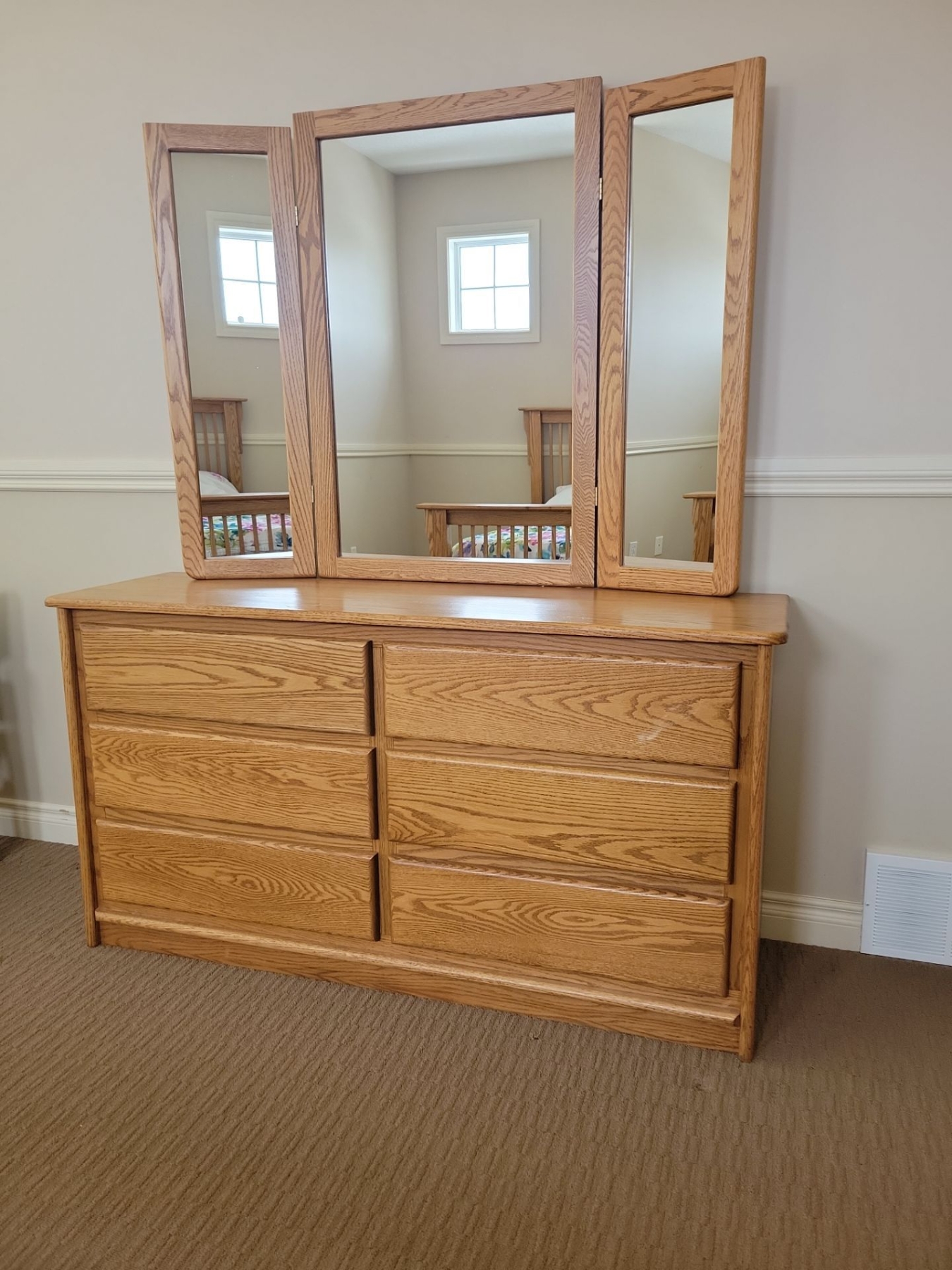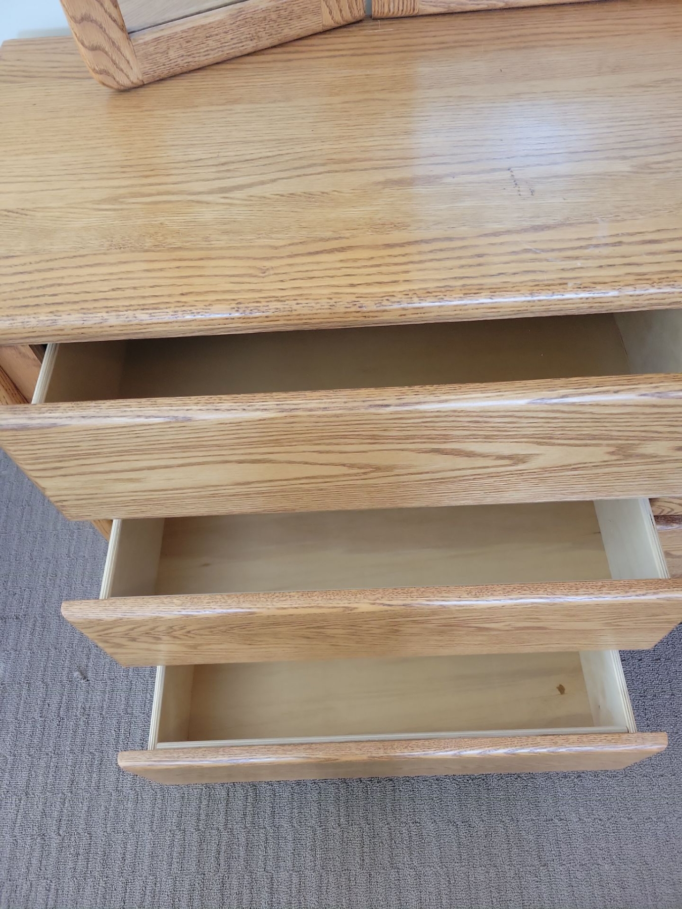 Double Wide Oak Dressing Table w/ Standing Mirror 59x23x70