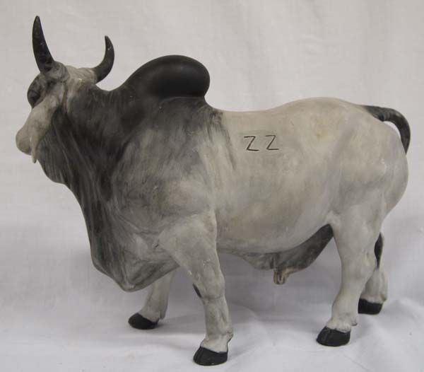 Double Z Ranch Ceramic Brahman Bull, measures 10''H x 13''L 5''W, anatomically correct, ZZ brand on left side