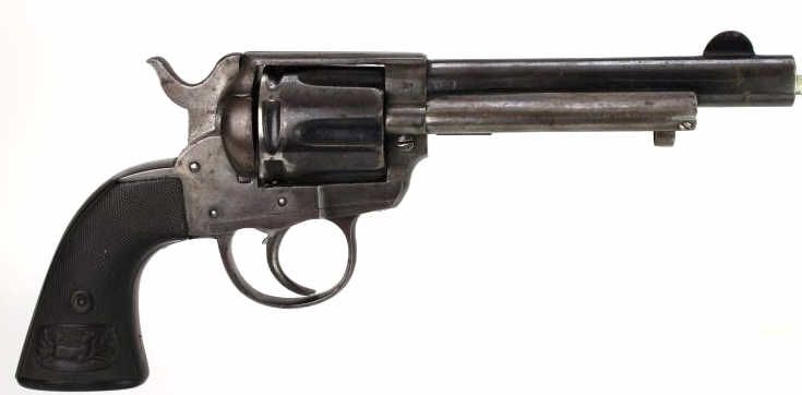 Double action revolver marked Cowboy Ranger on top of frame, .38 cal., shows crown proof marks to right side with 5" barrel, blued finish, case hardened frame and checkered hard rubber grips. Action very good with good bore.