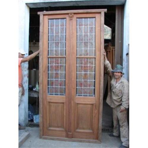 Double door made in solid cedar, with Stained glass, this door is full restore, coming with frame and hinges ( pre-hung), and no finish., You can work with the finish, as you like is ready to ad stain, varnish wax, it?s up to you.