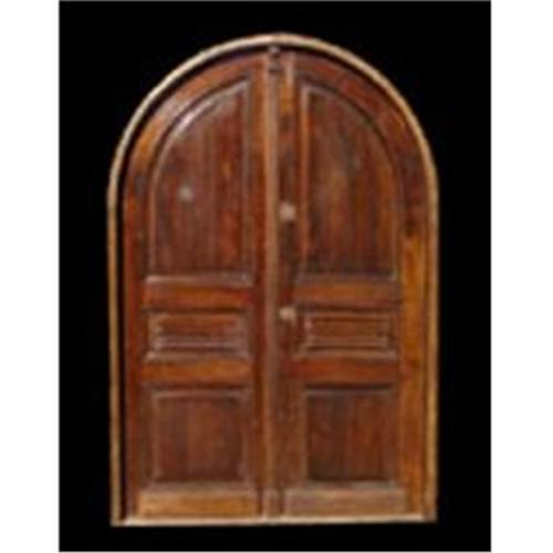 Double entry door made in oak with round top and wooden frame. It came already finish with its original frame and hinges.