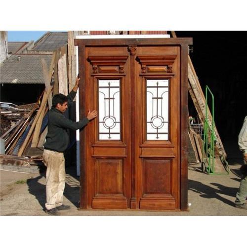 Double door made is solid European cedar, with wrought iron insert, this door is full restore, coming with frame and hinges ( pre-hung), and some finish, You will need just ad glasses and hardware, all the holes was cover, so you can drill new holes for your hardware. Also I recommend ad 2 coat of varnish.