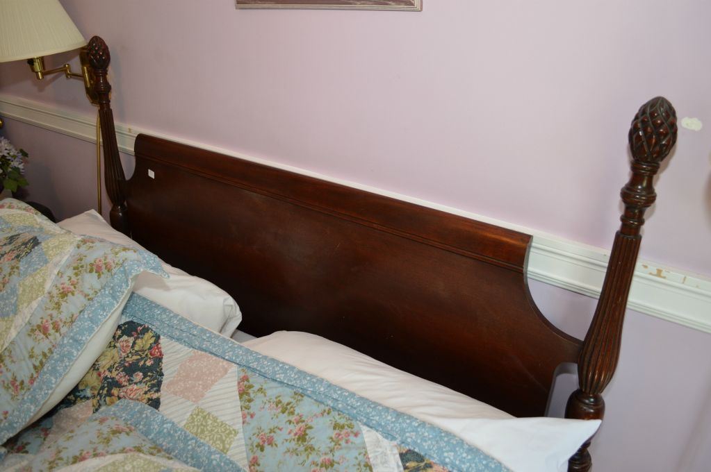 Double sized vintage mahogany pineapple headboard, footboard and rails