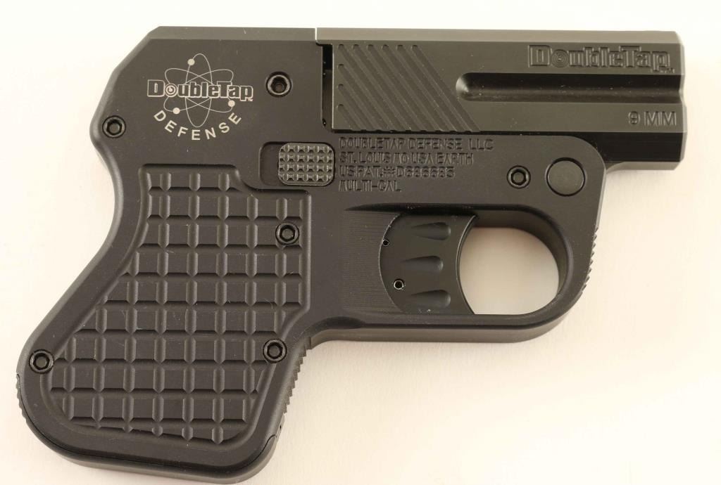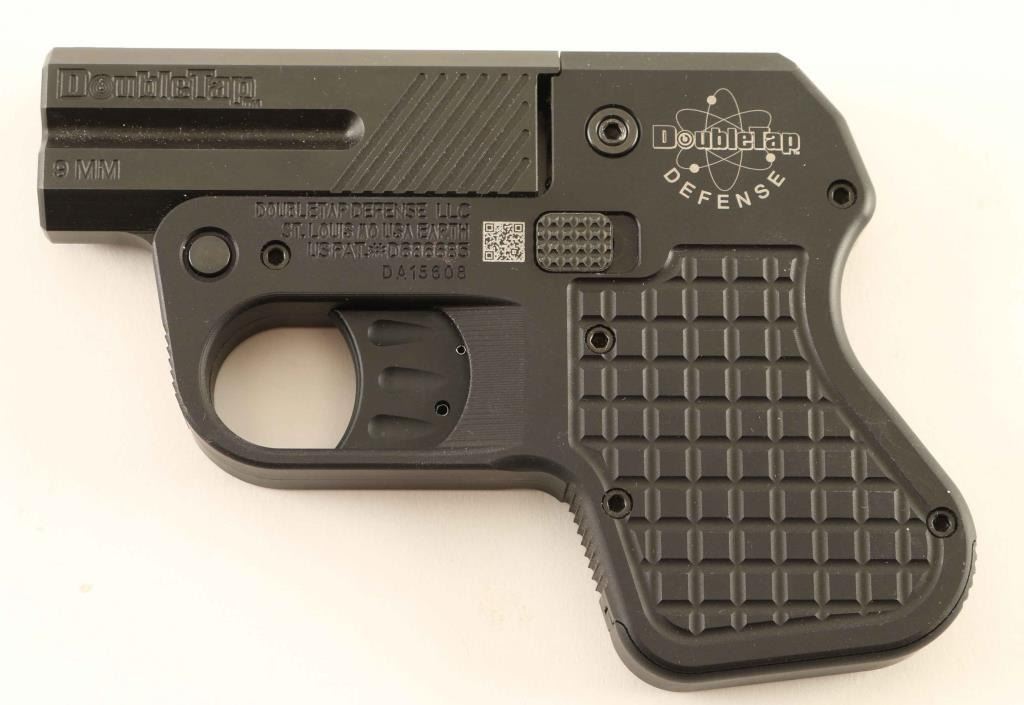 Derringer. Two-barreled. Break-top. Stainless steel matte-black barrels. Black synthetic frame. 3" barrels. Integral grips hold 2 rds. Ambidextrous thumb latch to eject rds. Slim, hammerless design for pocket carry. Bore appears very good, but dirty. Barrels lock-up tight. Comes in the original factory, with paperwork. safety lock, and black synthetic pocket holster. A nice little defensive gun for up close protection. Like new condition. NRA Condition-Excellent. Modern Firearm.