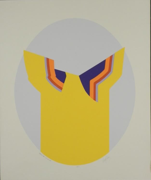 Here is an abstract design with bold yellow bird figure rising up like a phoenix.Artist: Doug Danz Signature: In pencil, lower right Title: Vida IEdition: Proof, marked "Sample Only Not For Sale"Medium: Lithograph on paperSheet size: 25 x 30 inches Condition: Very good; small dent, left side center
