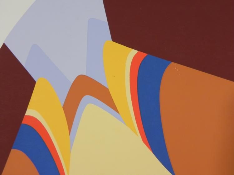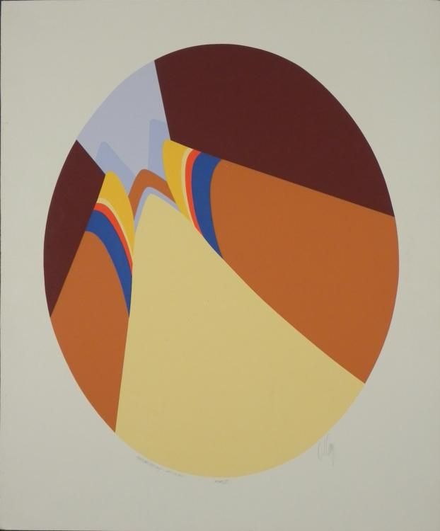 The tall tops of a canyon loom above in this stylish modern landscape. Artist: Doug Danz Signature: In pencil, lower right Title: Terra IIIEdition: Proof, Handling copyMedium: Lithograph on paperSheet size: 25 1/2 x 30 1/2 inches Condition: Very good; su