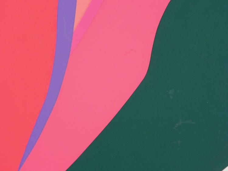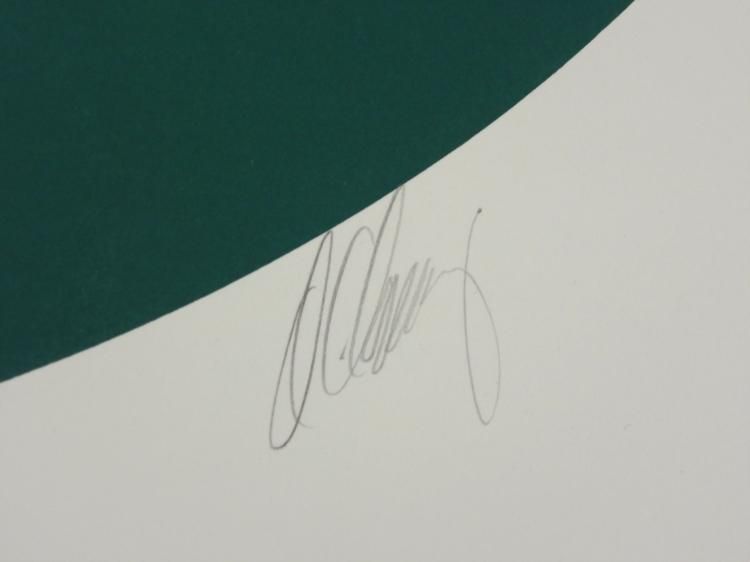 This abstract could be a valley in the desert, or a valley someplace else... Artist: Doug Danz Signature: In pencil, lower right Title: Mirage IIIEdition: Proof, marked "Hors Commerce"Medium: Lithograph on paperSheet size: 25 x 30 inches Condition: Very good; surface scuffs, lower right