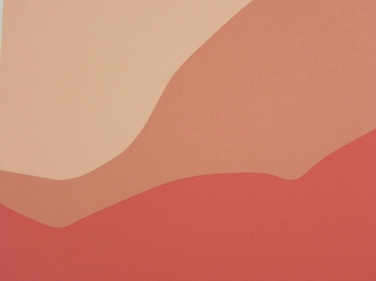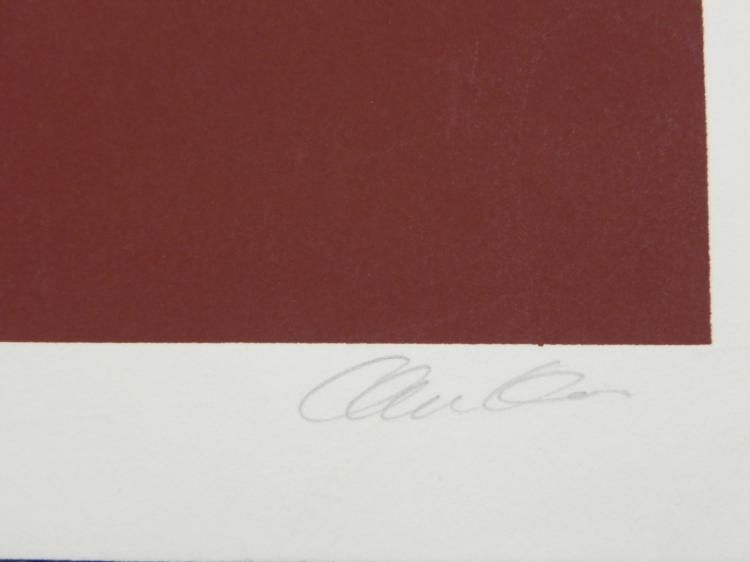 The tallest points of the canyon are portrayed in warm colors in this modern art print. Title: Canyon CArtist: Doug DanzSignature: Signed in pencil by the artist, lower rightMedium: Print on paperEdition: 95/100Size: 25" x 30"Condition: A couple minor scuff marks, lower left