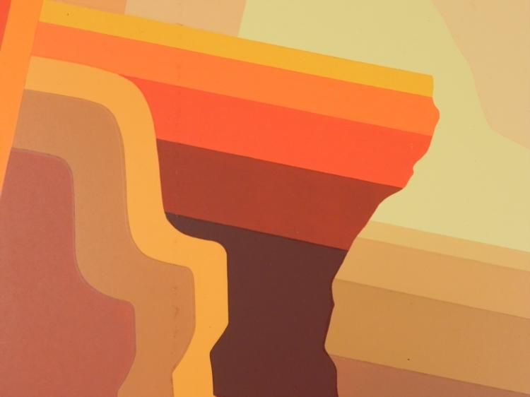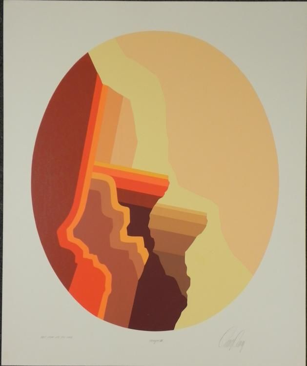 This canyon has abstract layers and colors of the American Southwest. Artist: Doug Danz Signature: In pencil, lower right Title: Canyon IIIEdition: Proof, marked "The Print Not For Sale"Medium: Lithograph on paperSheet size: 25 x 30 inches Condition: Very good; Some surface scuffs