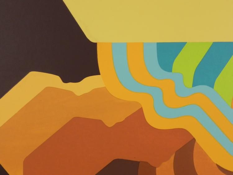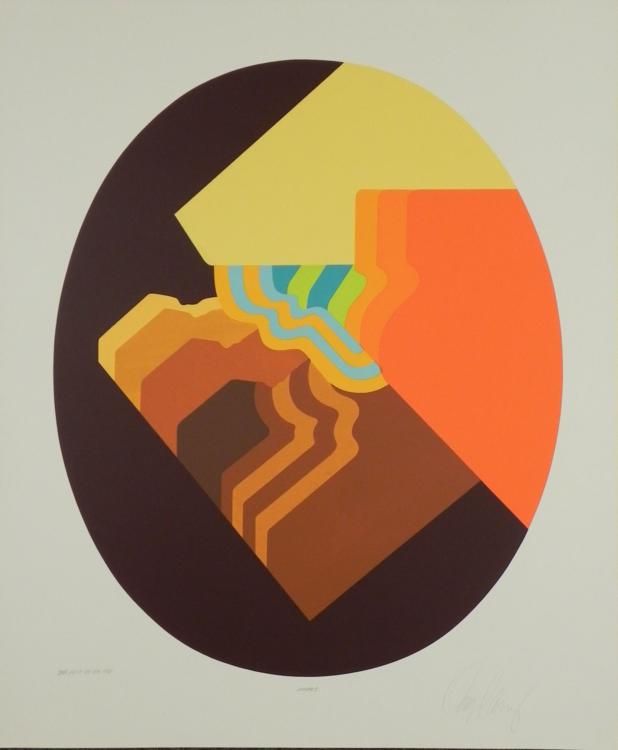 This layers of a desert canyon have been arranged in an abstract design in this print. Artist: Doug Danz Signature: In pencil, lower right Title: Canyon IEdition: Proof, marked "This Print Not For Sale"Medium: Lithograph on paperSheet size: 25 x 30 inches Condition: Very good; minor surface spots