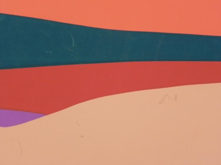 Here is an abstract landscape that breaks down the layers into bold shapes and colors.Artist: Doug Danz Signature: In pencil, lower right Title: Strata BEdition: Proof, marked "Hours Commerce"Medium: Lithograph on paperSheet size: 25 x 30 inches Conditio