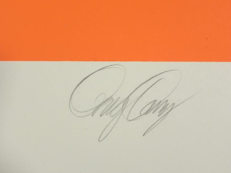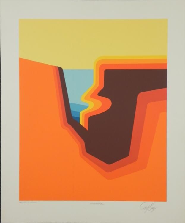 This is a strange, abstract landscape, with a nice warm sense of colors. Artist: Doug Danz Signature: In pencil, lower right Title: Earthwatch IVEdition: Proof, marked "The Print Not For Sale"Medium: Lithograph on paperSheet size: 25 x 30 inches Condition: Very good; Some surface scuffs