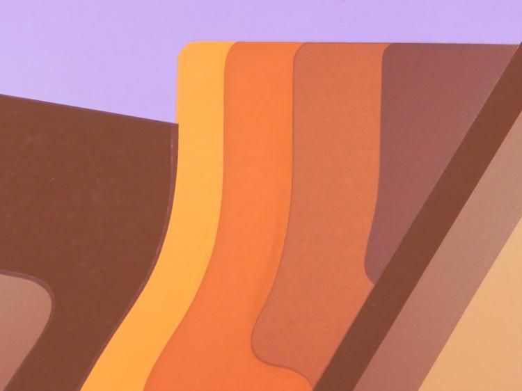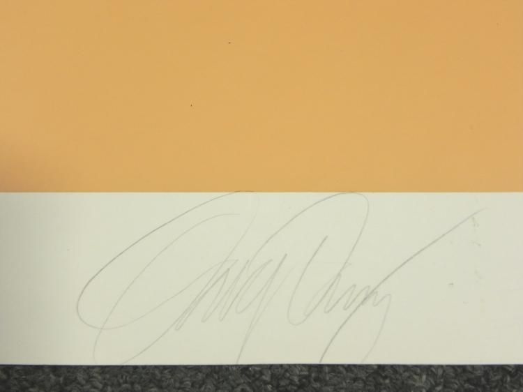 In the abstract layers of this print can be seen a valley, cliffs, and a blue river.Artist: Doug Danz Signature: In pencil, lower right Title: Elevation IIIEdition: Proof, marked "This print not for sale"Medium: Lithograph on paperSheet size: 24 x 28 inches Condition: Very good; minor surface scuffs