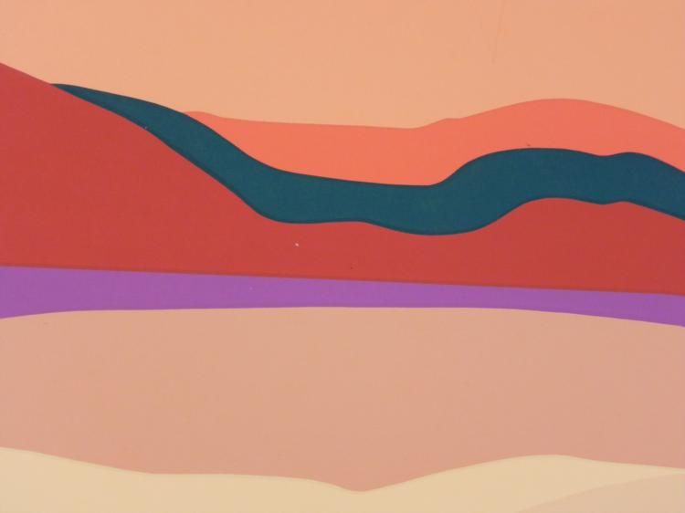 This abstract American Southwestern landscape portrays layers of windswept hills and valleys. Artist: Doug Danz Signature: In pencil, lower right Title: Canyon CEdition: Proof, marked "Hours Commerce"Medium: Lithograph on paperSheet size: 25 x 30 inches Condition: Very good; surface scuffs, corner wear