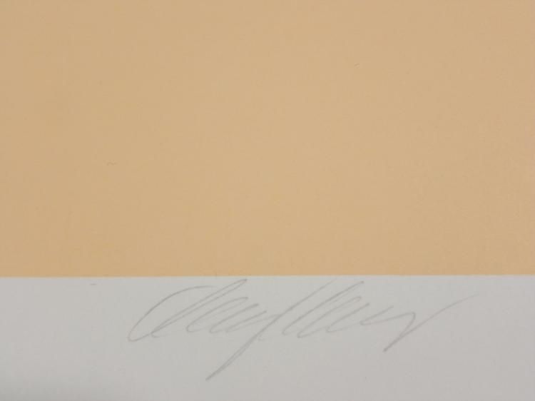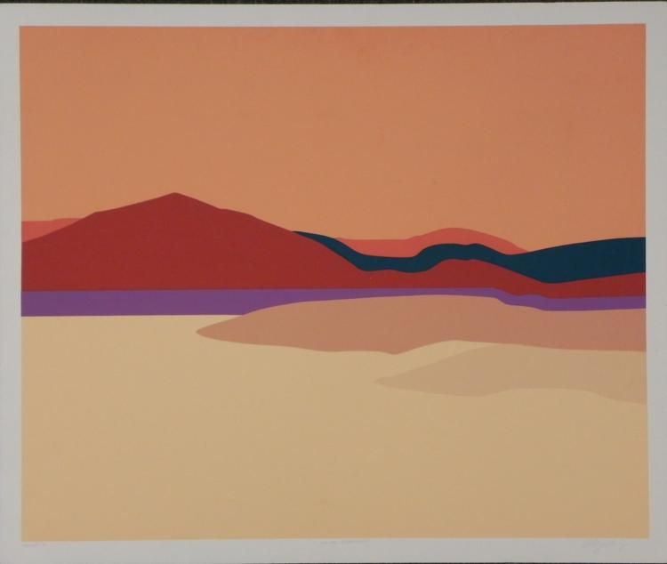 This abstract American Southwestern landscape portrays layers of windswept hills and valleys. Artist: Doug Danz Signature: In pencil, lower right Title: Canyon CEdition: Proof, marked "Hours Commerce"Medium: Lithograph on paperSheet size: 25 x 30 inches Condition: Very good; surface scuffs, corner wear